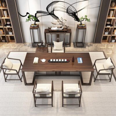 Bàn trà gỗ chắc chắn theo phong cách Trung Quốc mới Bàn trà Kung Fu Zen Bàn trà và ghế kết hợp Bàn trà văn phòng tối giản hiện đại