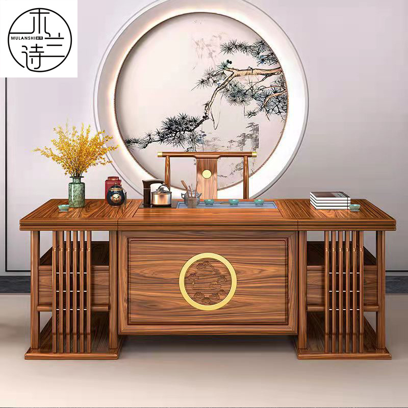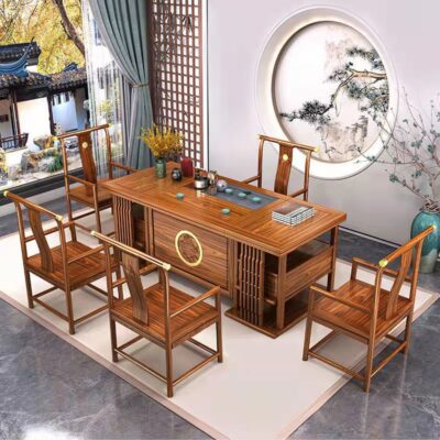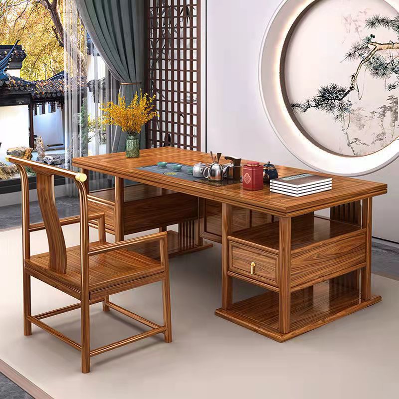 Bàn trà gỗ đặc phong cách Trung Quốc mới và ghế kết hợp gỗ hồng mộc 1.8_2.0_2.2 mét Bàn trà Kung Fu Bàn trà gỗ gụ