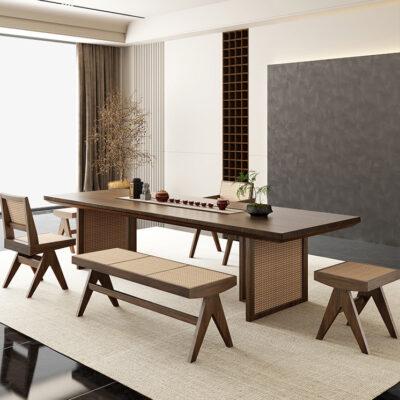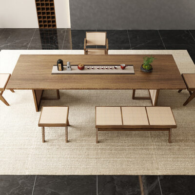 Bàn trà gỗ đặc phong cách wabi-sabi kết hợp bàn ghế phòng khách gia đình bảng lớn Bàn trà Kung Fu văn phòng tiếp tân Bàn trà