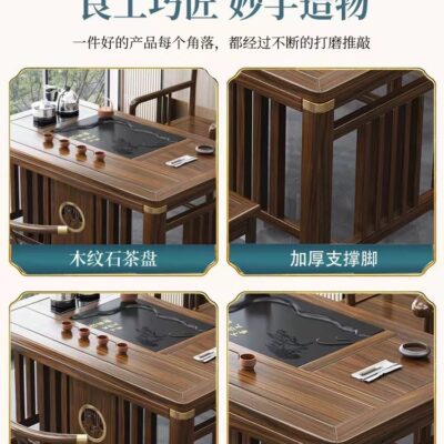 Bàn trà gỗ đặc trọn bộ Bàn trà kung fu đơn giản tích hợp nước sôi Bàn trà phòng khách bộ kết hợp bàn ghế phong cách Trung Quốc mới