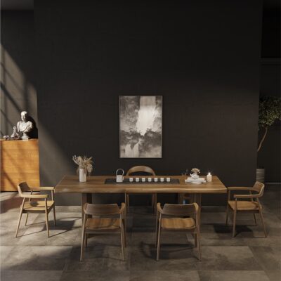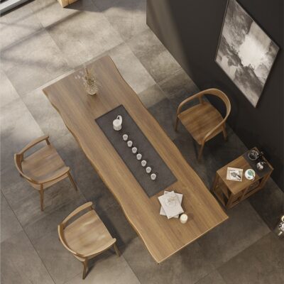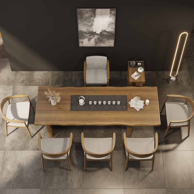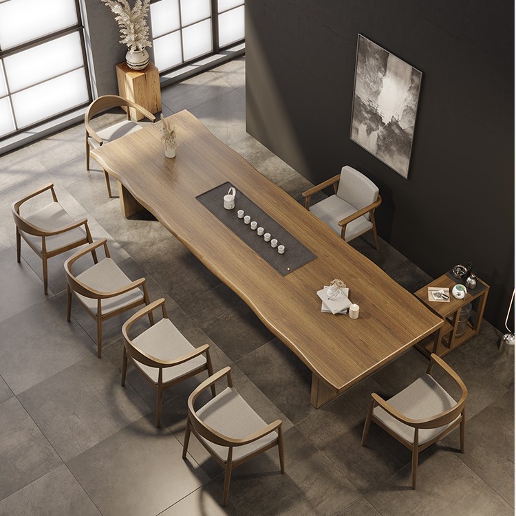 Bàn trà gỗ đặc trọn bộ Bàn trà và ghế kết hợp một Bàn trà hiện đại tối giản hộ gia đình kung fu bảng gỗ lớn bàn hội nghị