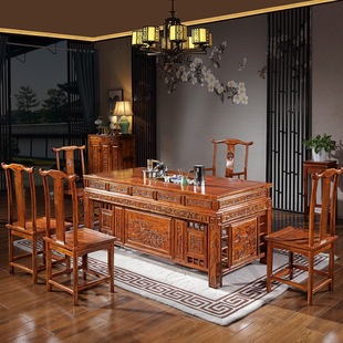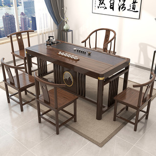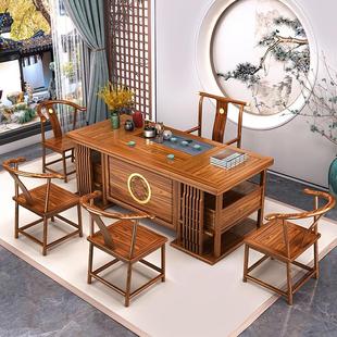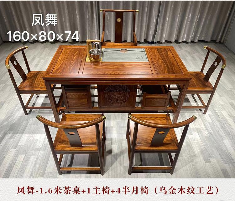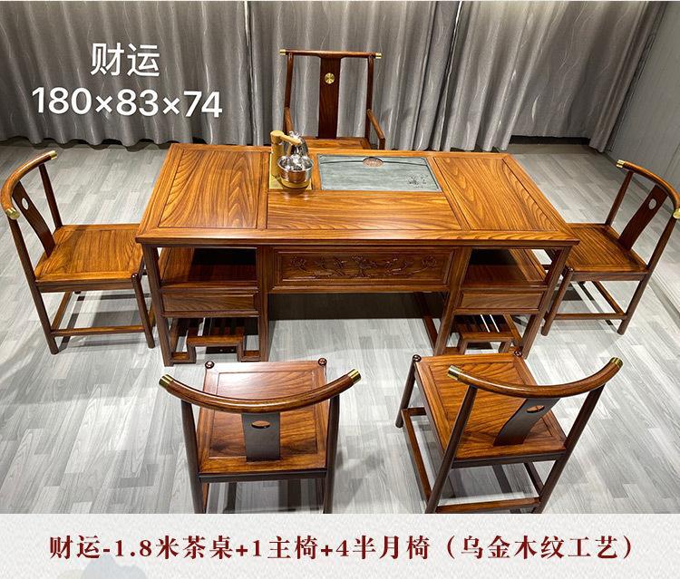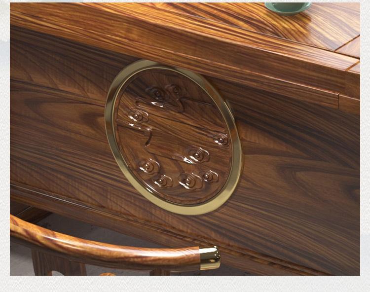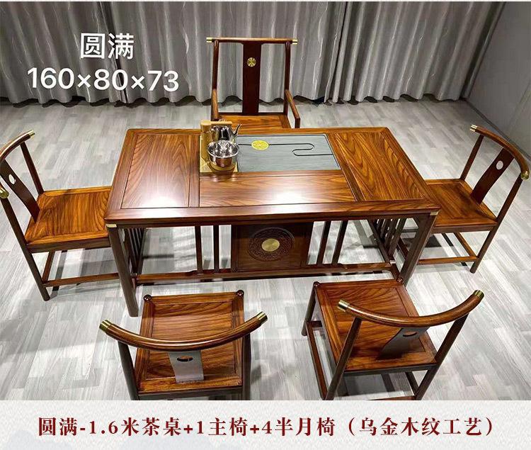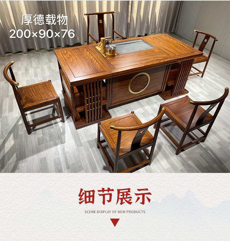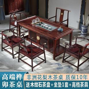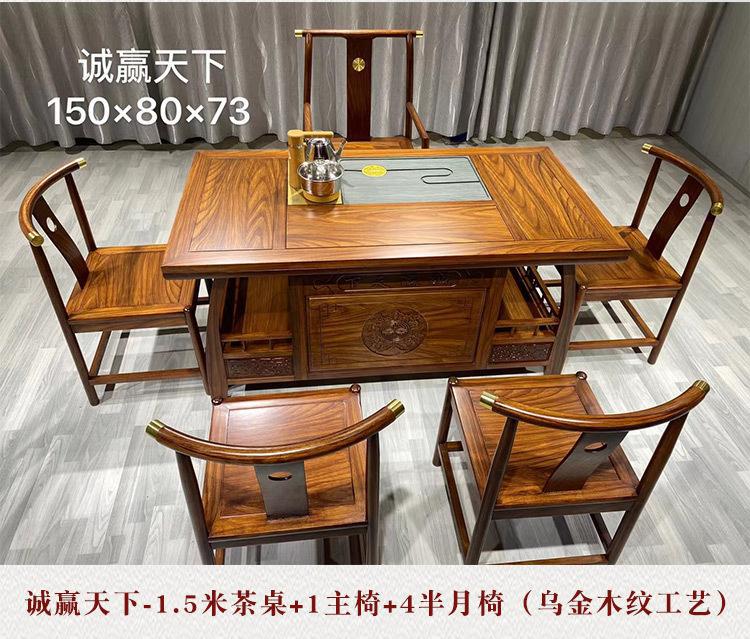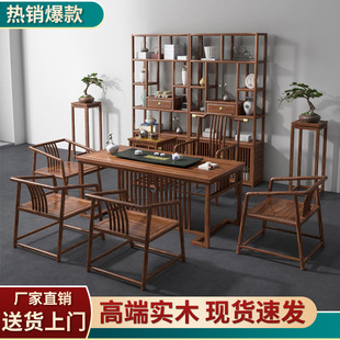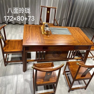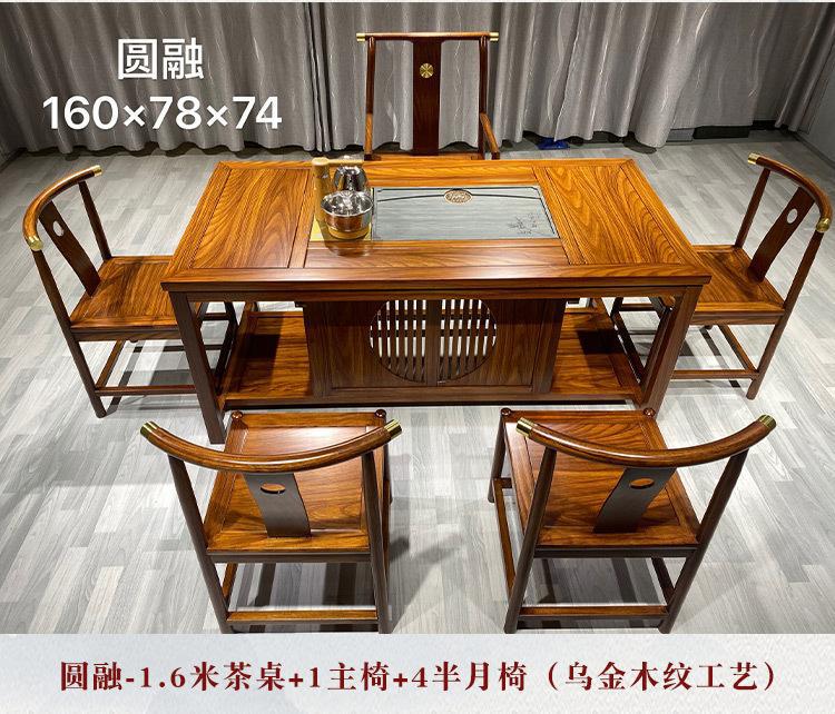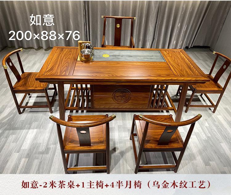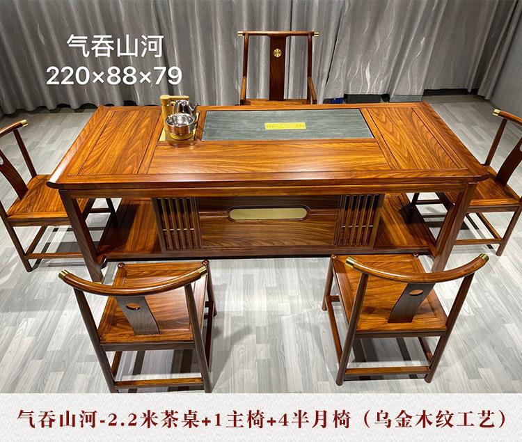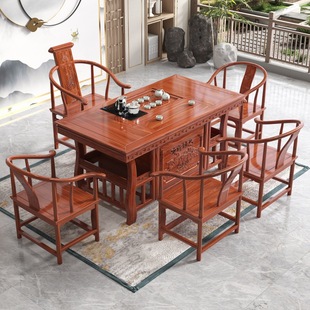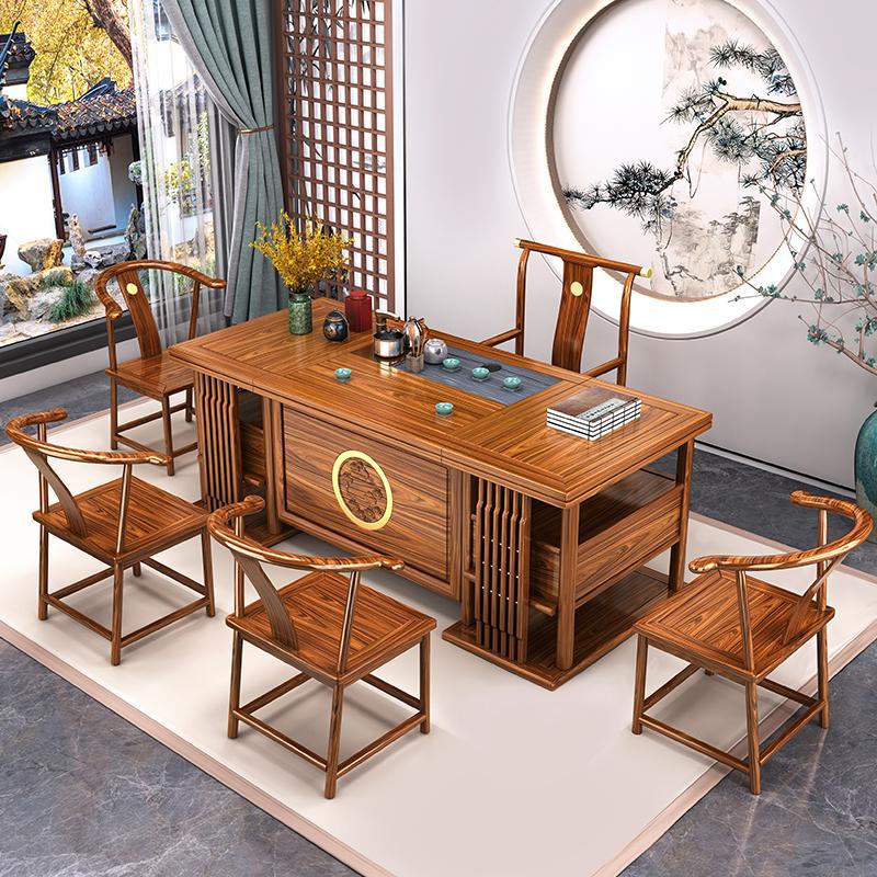 Bàn trà gỗ đặc và ghế kết hợp Bàn trà gỗ gụ phong cách Trung Quốc mới Bàn cà phê Kung Fu bàn phòng khách hộ gia đình gỗ hồng mộc Bàn trà gỗ mắt cáo