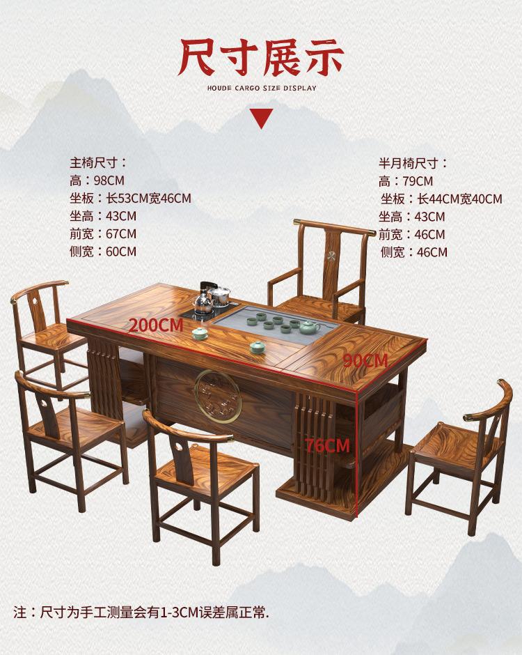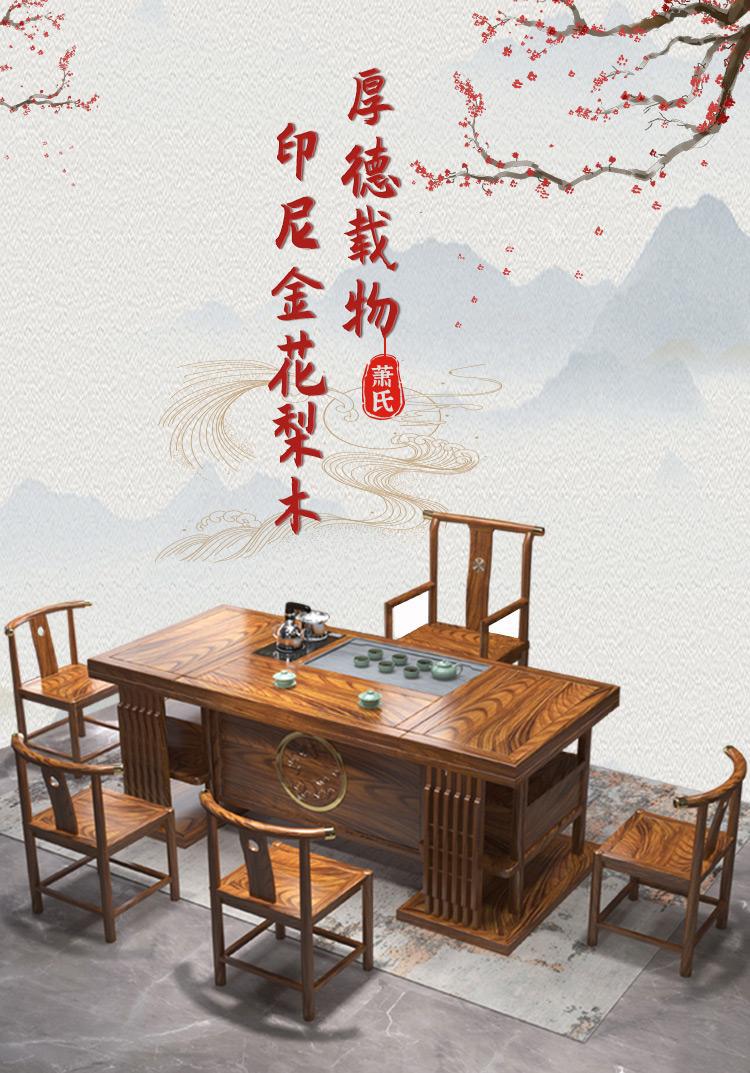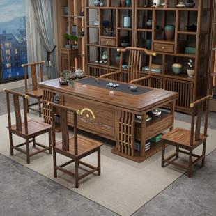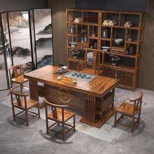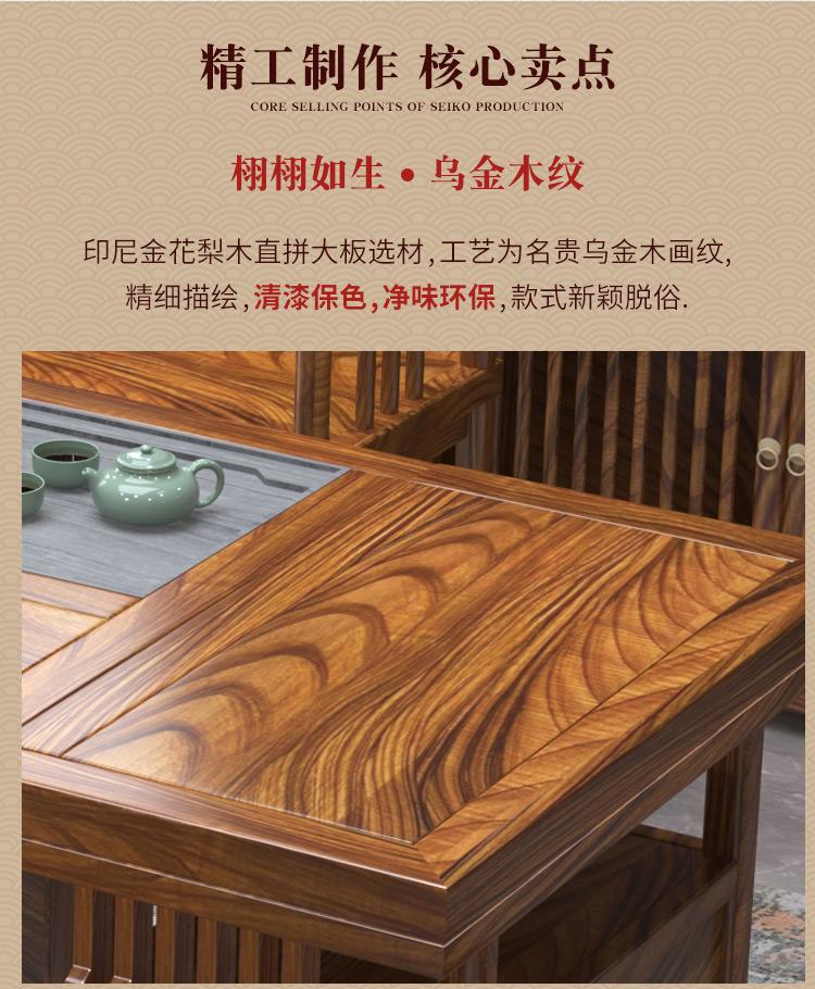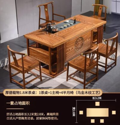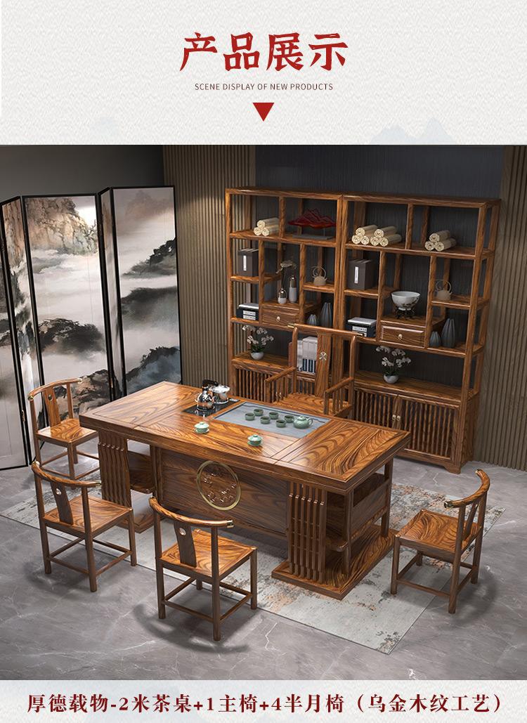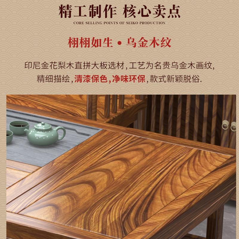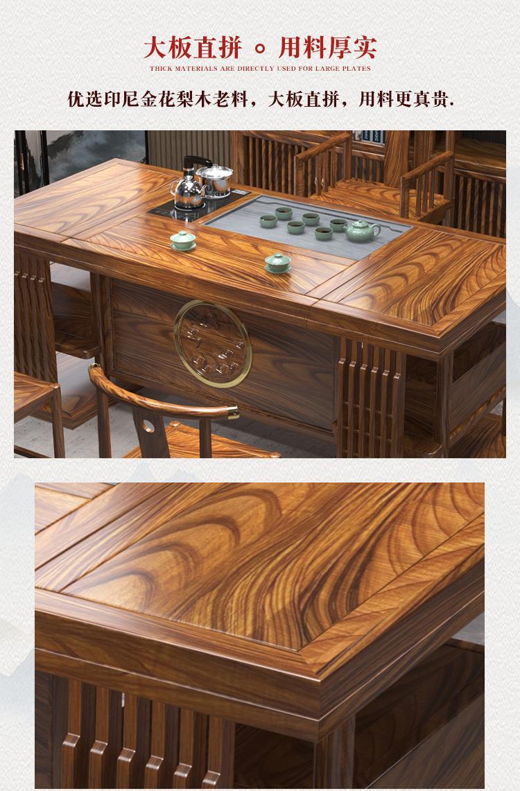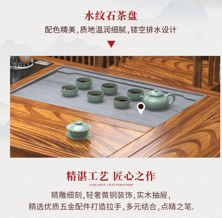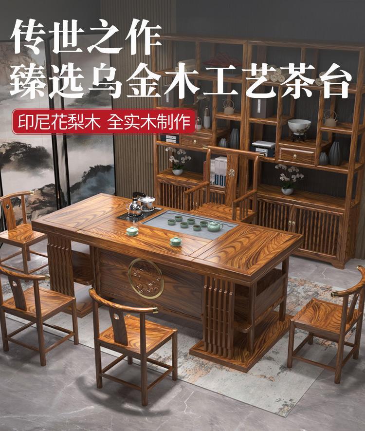 Bàn trà gỗ đặc và ghế kết hợp Bàn trà gỗ gụ phong cách Trung Quốc mới Bàn cà phê Kung Fu bàn phòng khách hộ gia đình gỗ hồng mộc Bàn trà gỗ mắt cáo