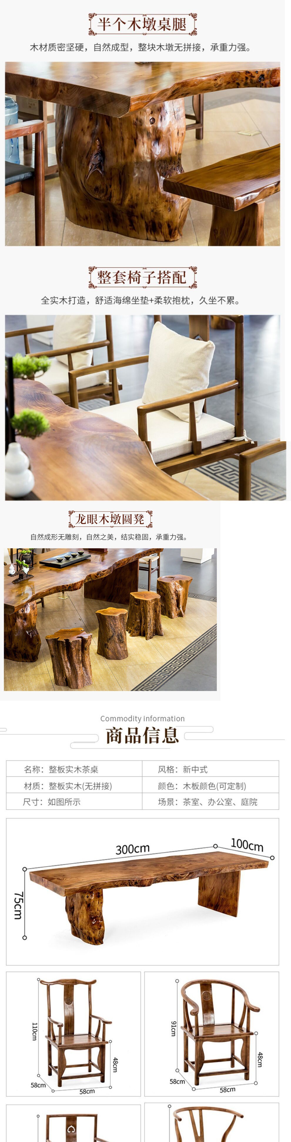 Bàn trà gỗ đặc và ghế kết hợp gỗ lớn Bàn trà văn phòng Bàn trà Zen mới phong cách Trung Quốc Bàn trà hiện đại đơn giản