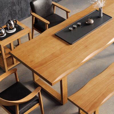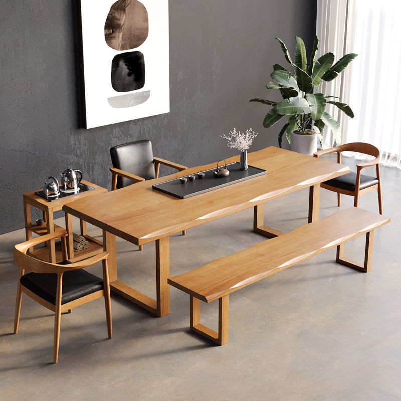Bàn trà gỗ nguyên khối ban công và ghế kết hợp Bàn trà kiểu Trung Quốc mới văn phòng tối giản hiện đại Zen bảng lớn Bàn đàm phán Kung Fu