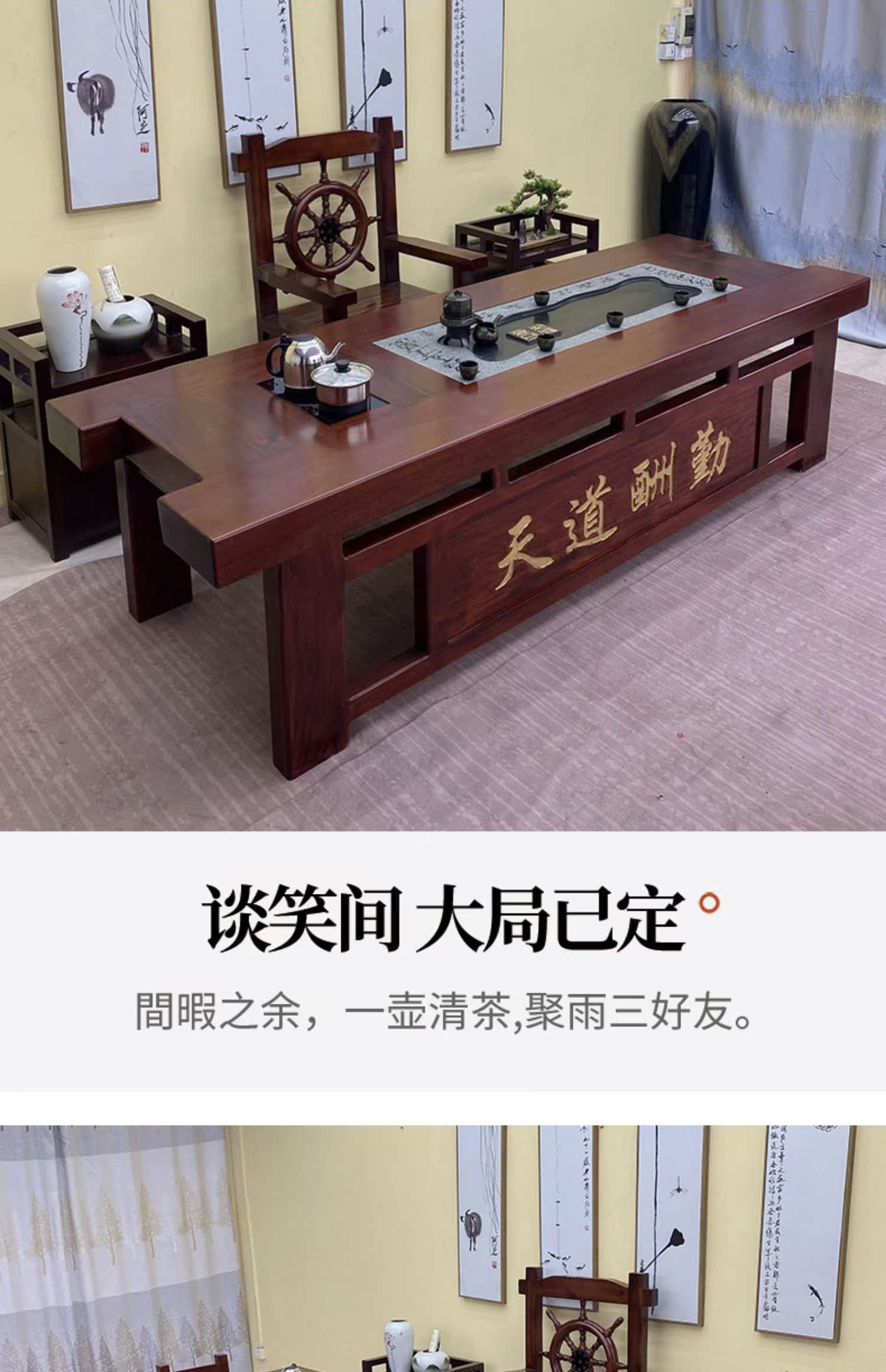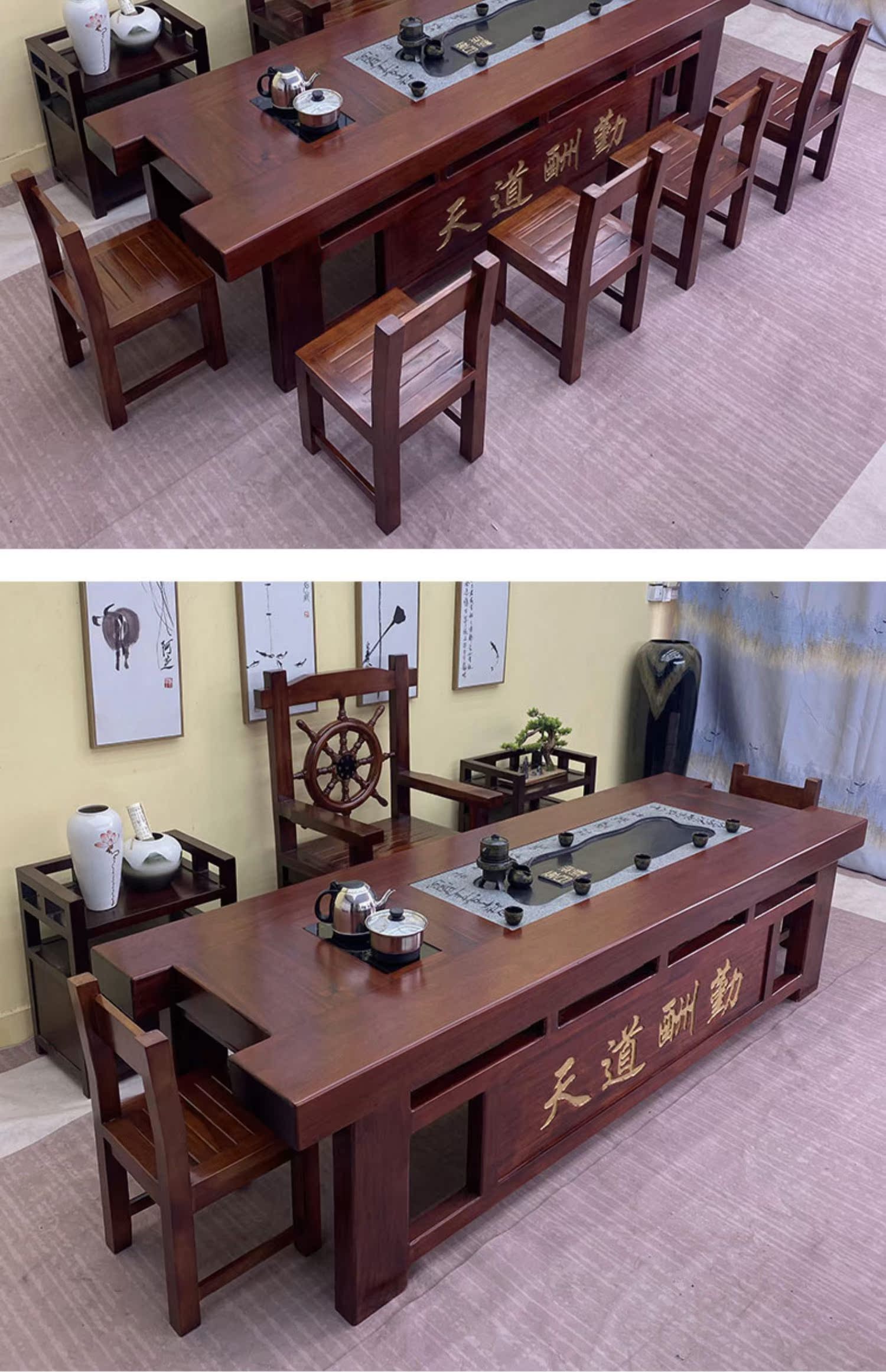 Bàn trà gỗ nguyên khối gỗ cổ tàu kết hợp bàn trà phong cách Trung Quốc bàn pha trà Zen phòng khách nhà bàn trà Kung Fu bộ tất cả trong một