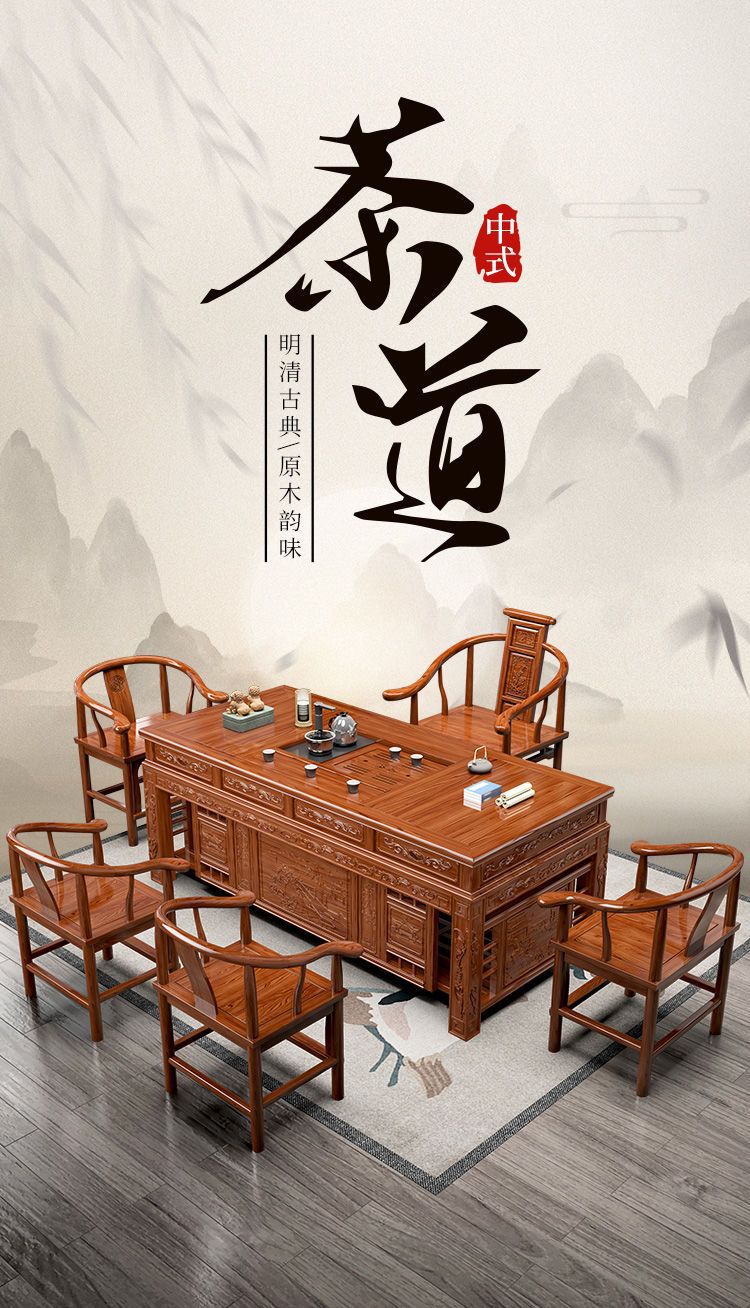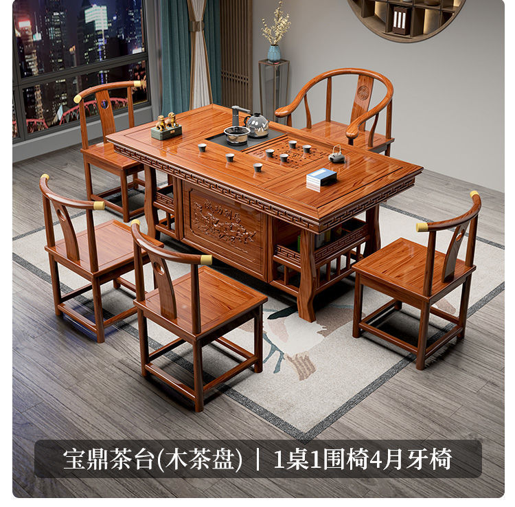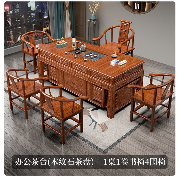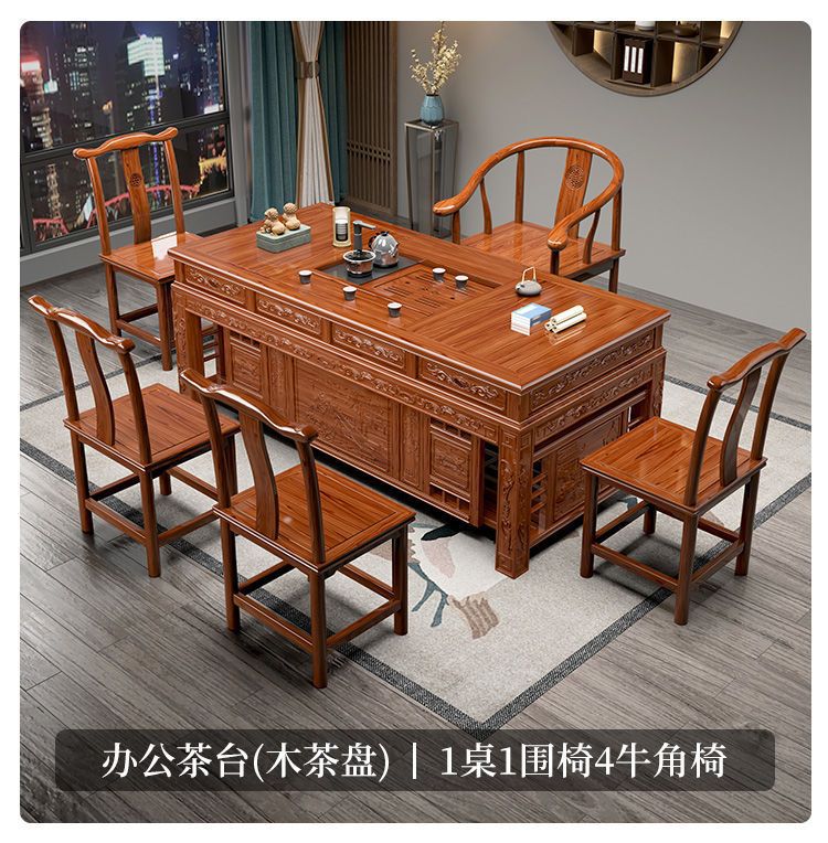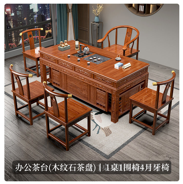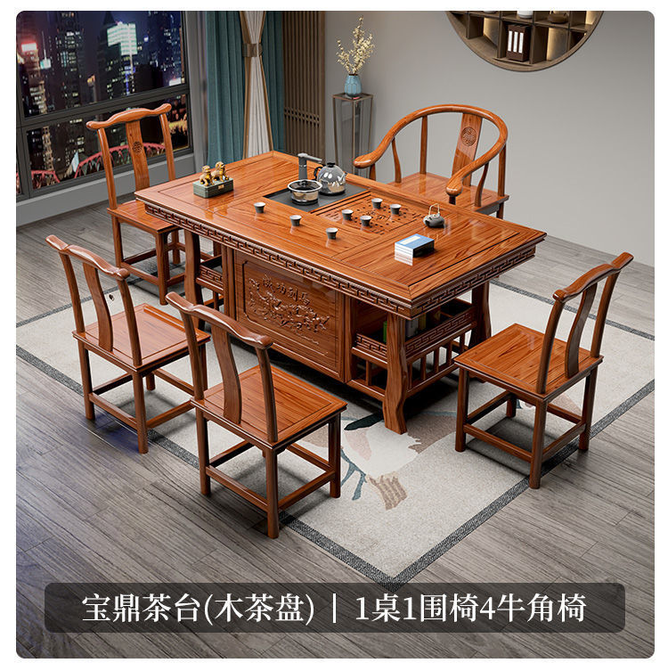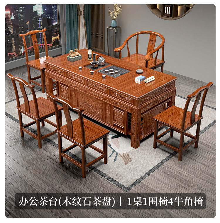 Bàn trà gỗ nguyên khối kết hợp Bàn trà văn phòng bộ đầy đủ Bàn trà mới của Trung Quốc bàn cà phê bàn lưỡng dụng hai trong một
