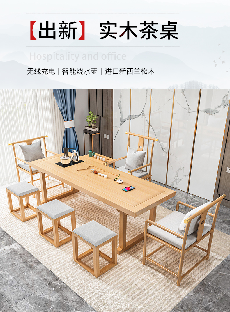 Bàn trà gỗ nguyên khối kiểu Trung Quốc mới kết hợp thiết lập một bàn trà kung fu nhà bàn trà bàn trà Zen log bàn trà