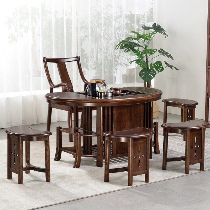 Bàn trà gỗ nguyên khối Kung Fu Bàn trà bộ trà một văn phòng ban công nhà phòng khách Bàn trà Trung Quốc kết hợp ghế