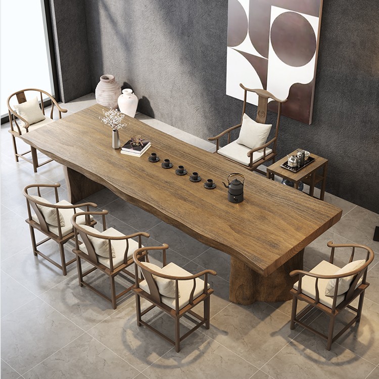 Bàn trà gỗ nguyên khối phong cách Trung Quốc mới phòng khách bảng lớn Bàn trà và ghế kết hợp quầy lễ tân Phòng trà thiền trọn bộ Bàn trà gỗ