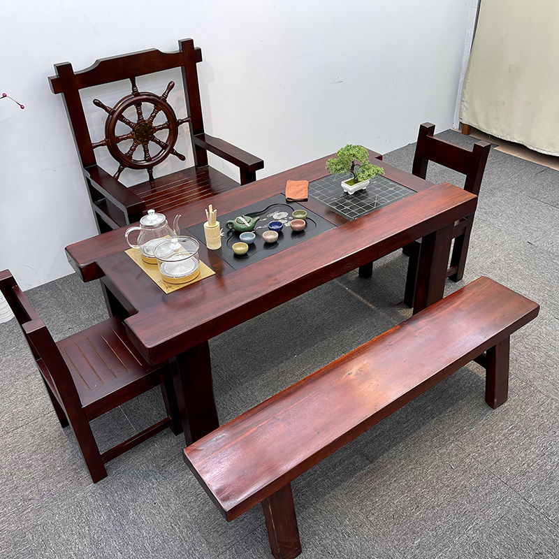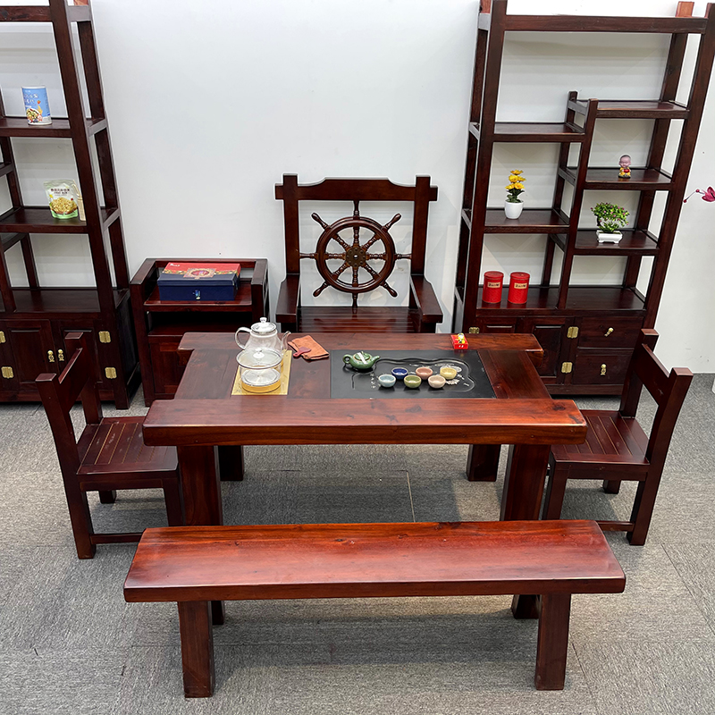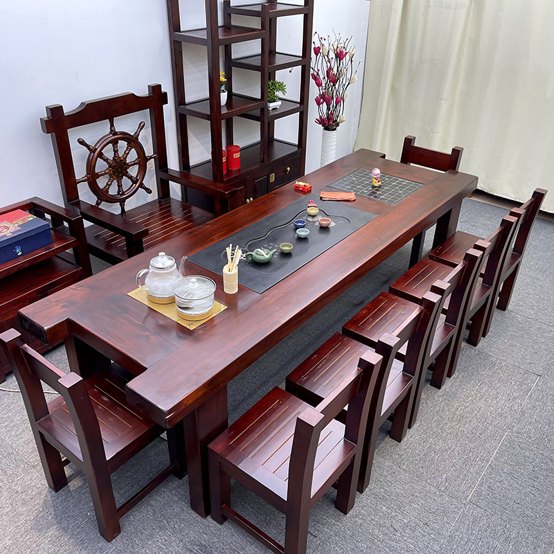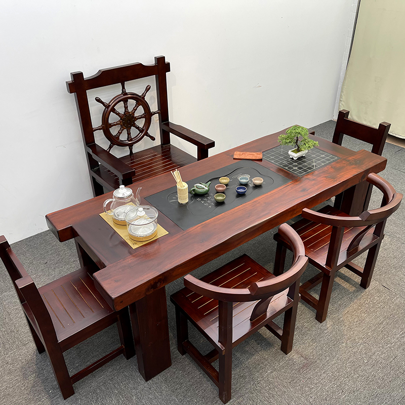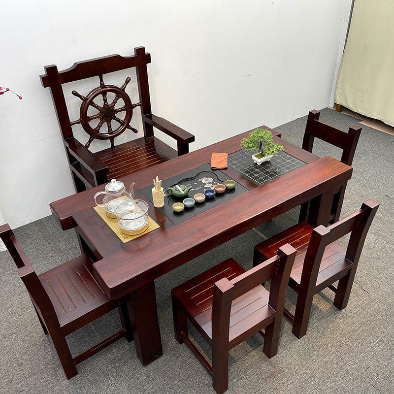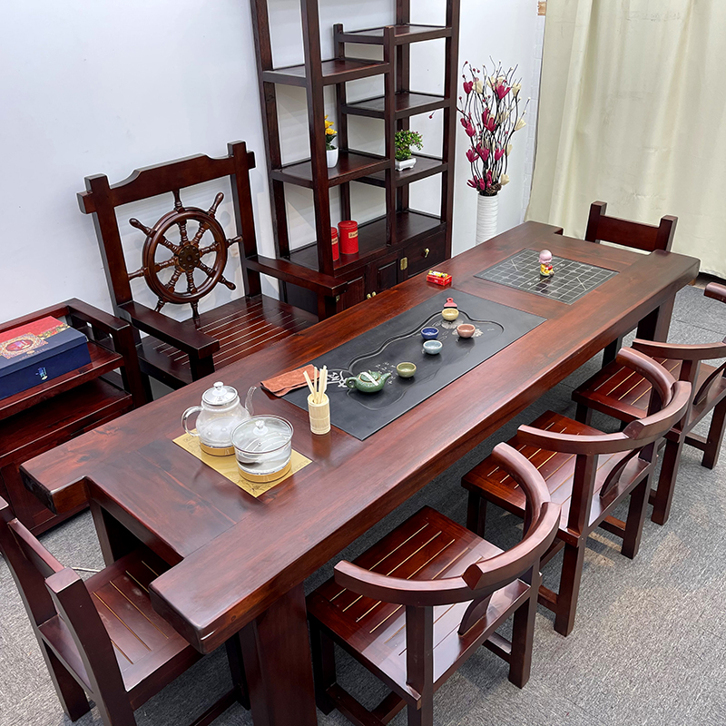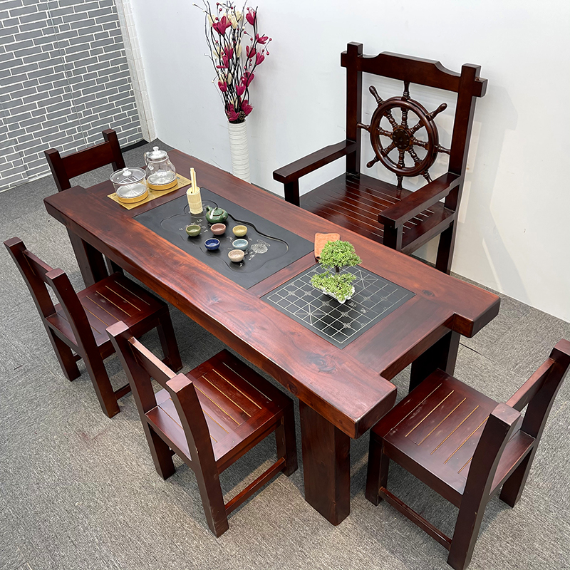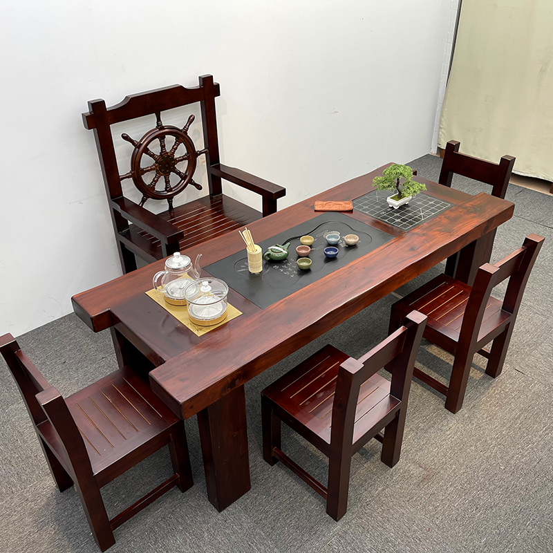 Bàn trà nguyên khối gỗ thuyền cũ Bàn ghế Kung Fu 1 mét 8 Bàn trà văn phòng gia đình Bộ bàn trà kết hợp. Bàn trà nhập khẩu phong cách Trung Hoa