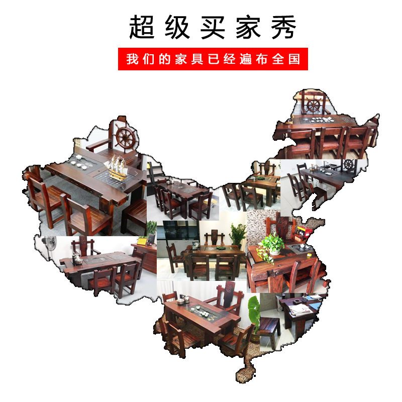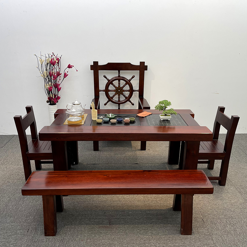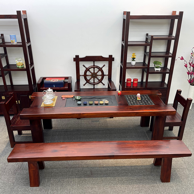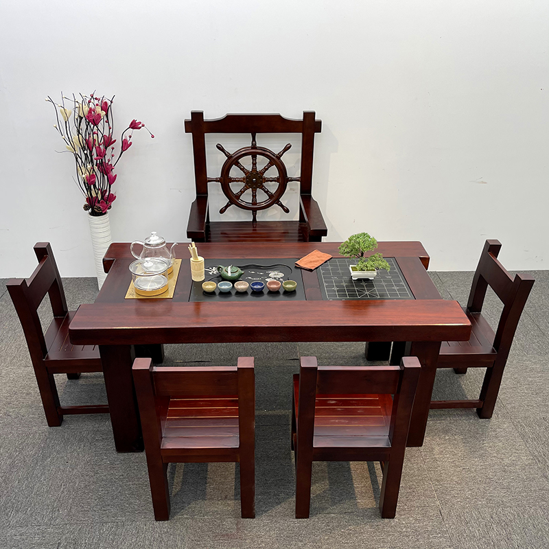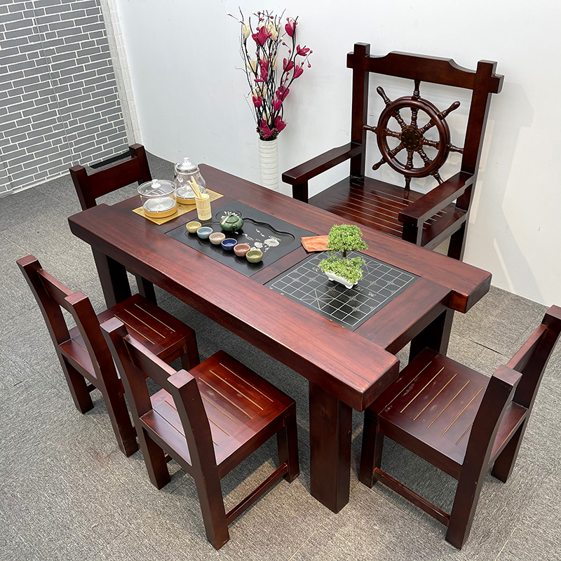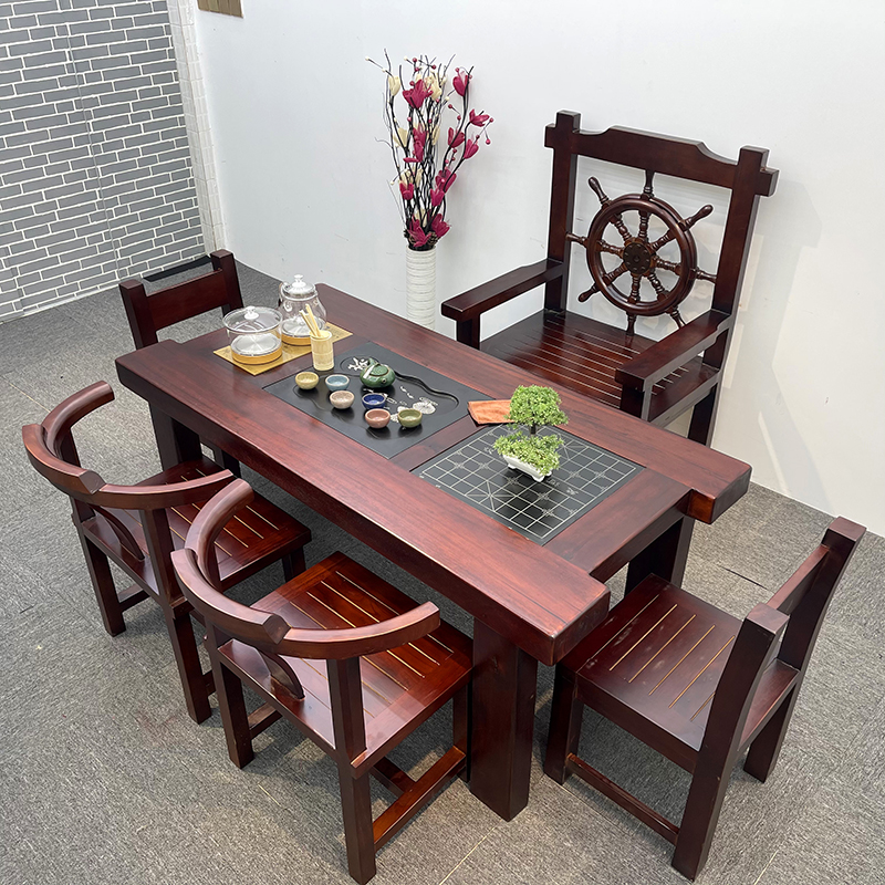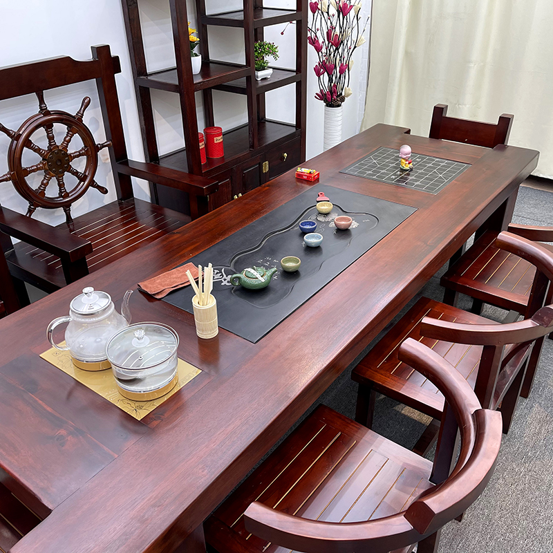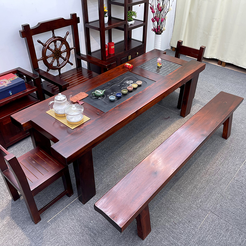 Bàn trà nguyên khối gỗ thuyền cũ Bàn ghế Kung Fu 1 mét 8 Bàn trà văn phòng gia đình Bộ bàn trà kết hợp. Bàn trà nhập khẩu phong cách Trung Hoa