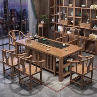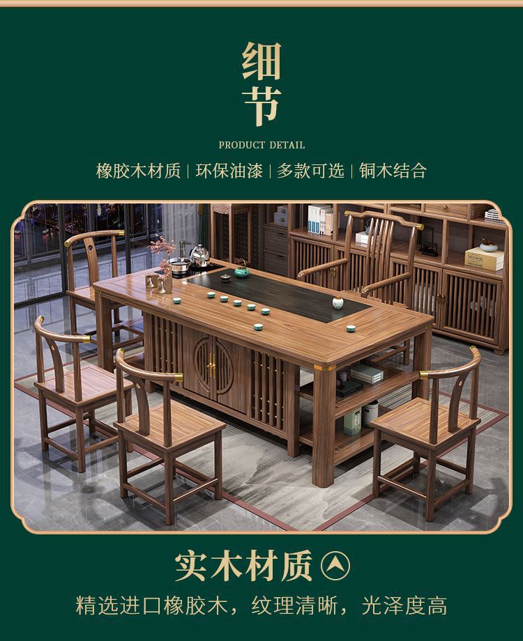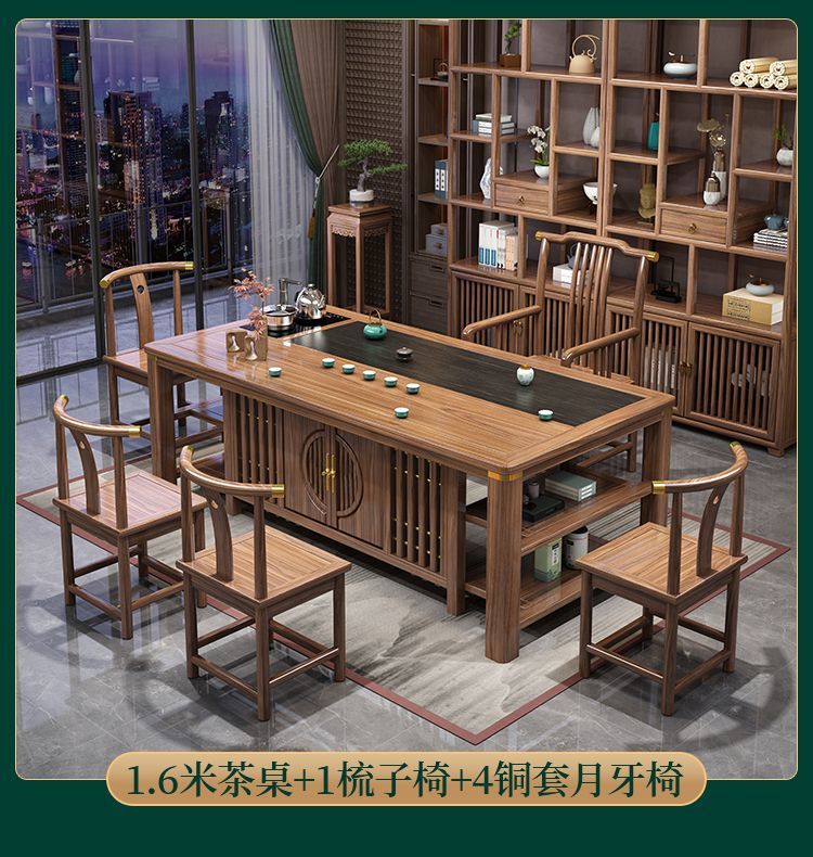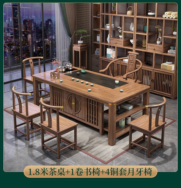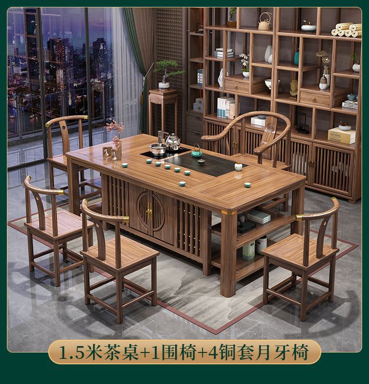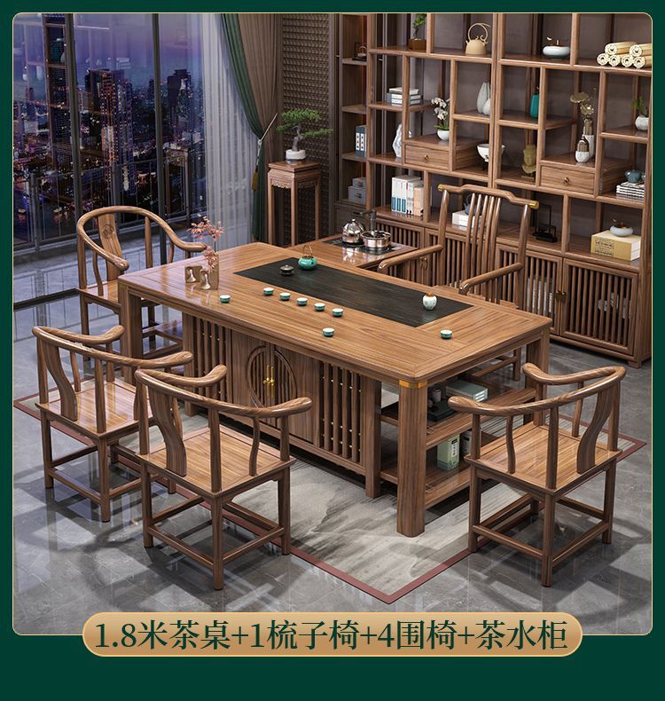 Bàn trà gỗ nguyên khối và ghế kết hợp Bàn trà kiểu Trung Quốc mới bàn cà phê văn phòng bộ trà gia đình một bàn pha trà Zen