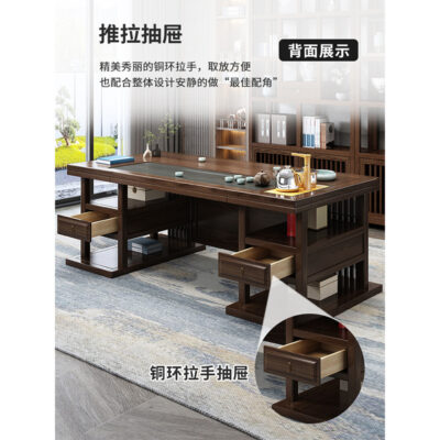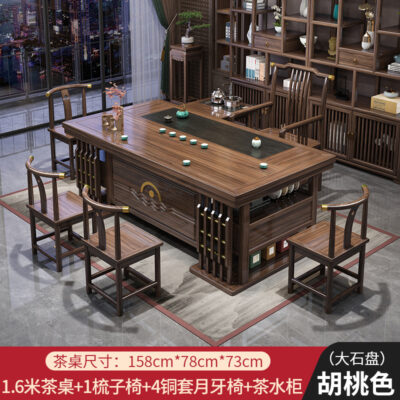 Bàn trà gỗ nguyên khối và ghế kết hợp Bàn trà văn phòng bộ trà hộ gia đình hiện đại kung fu tích hợp Bàn trà phong cách Trung Quốc mới