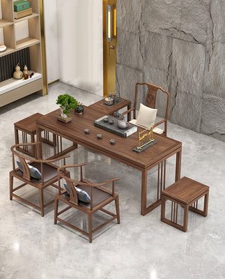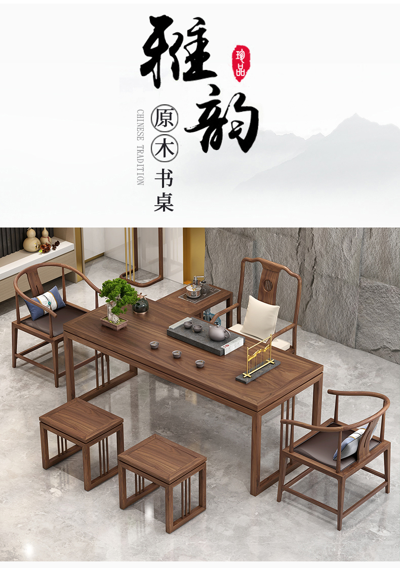 Bàn trà gỗ óc chó nhập khẩu, thiết kế đơn giản, cổ điển.