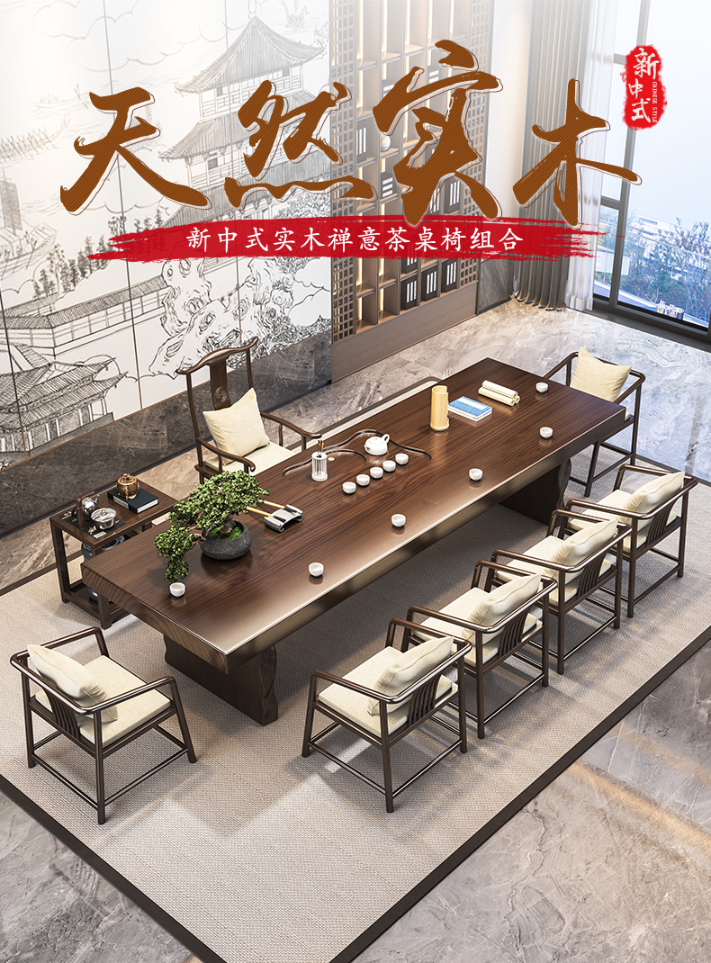 Bàn trà gỗ rắn kết hợp bàn ghế bảng lớn toàn bộ bảng gỗ đăng nhập Zen mới nhà Trung Quốc phòng khách bàn trà pha trà bàn uống trà hiện đại