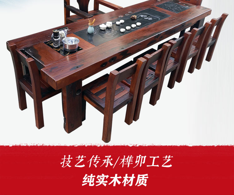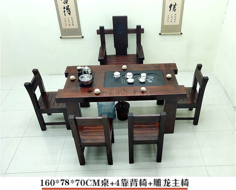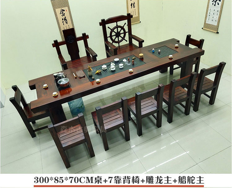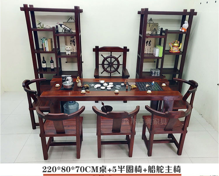 Bàn trà gỗ tàu cũ bàn ghế kết hợp bàn trà gỗ nguyên tấm nguyên chất văn phòng tối giản hiện đại Bàn trà Trung Quốc nhà bộ một