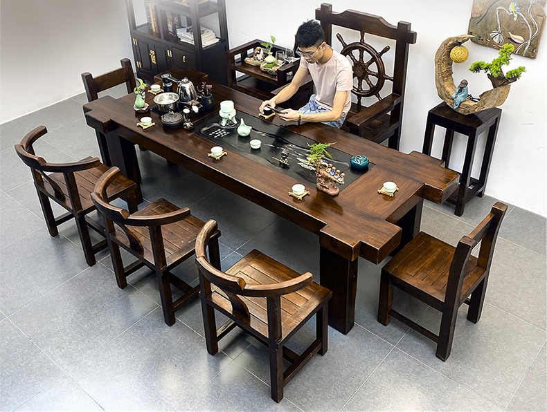 Bàn trà gỗ thuyền cũ bàn ghế kết hợp bàn trà Kung Fu bàn trà gỗ đặc bàn trà văn phòng bàn lớn nhà bộ một