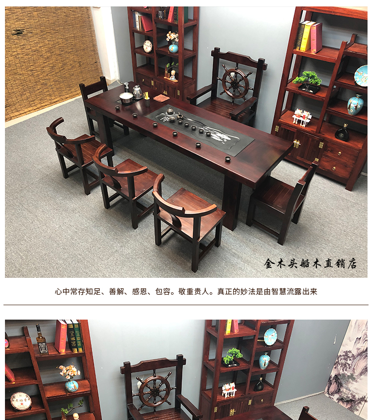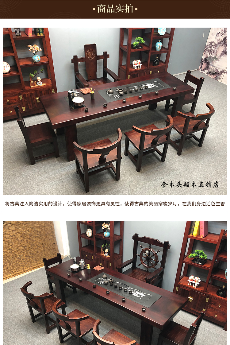 Bàn trà gỗ thuyền cũ bàn ghế kết hợp bàn trà Kung Fu bàn trà gỗ rắn bộ bàn trà bộ một nhà văn phòng bàn cà phê lớn