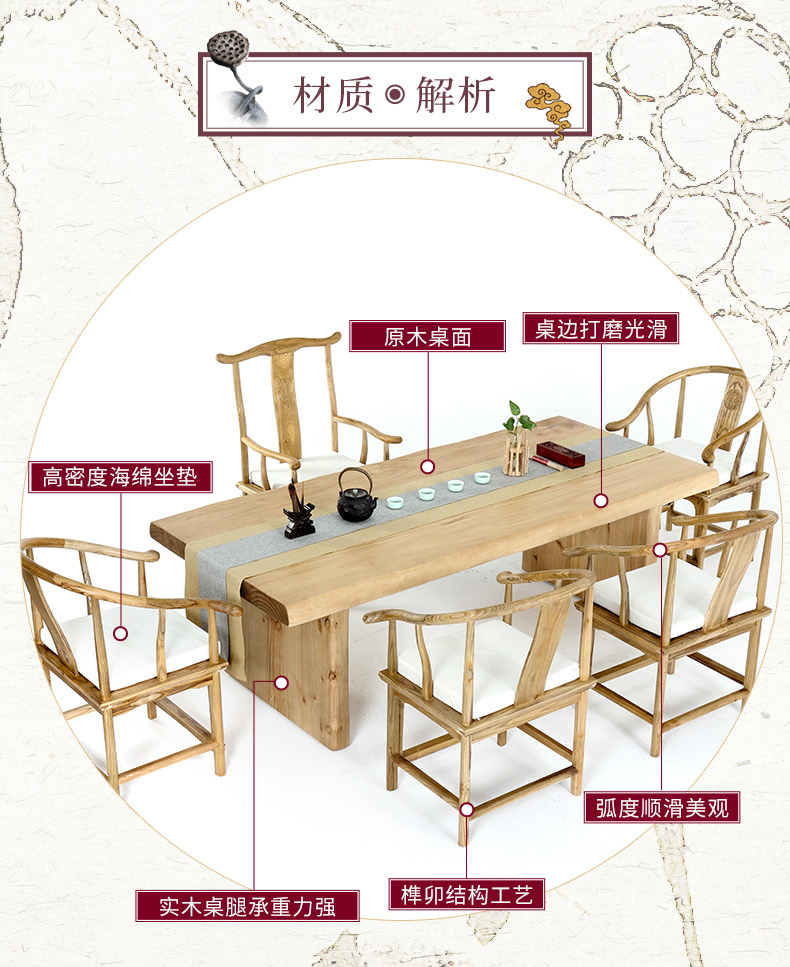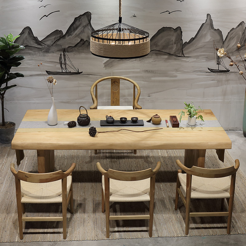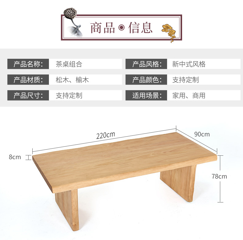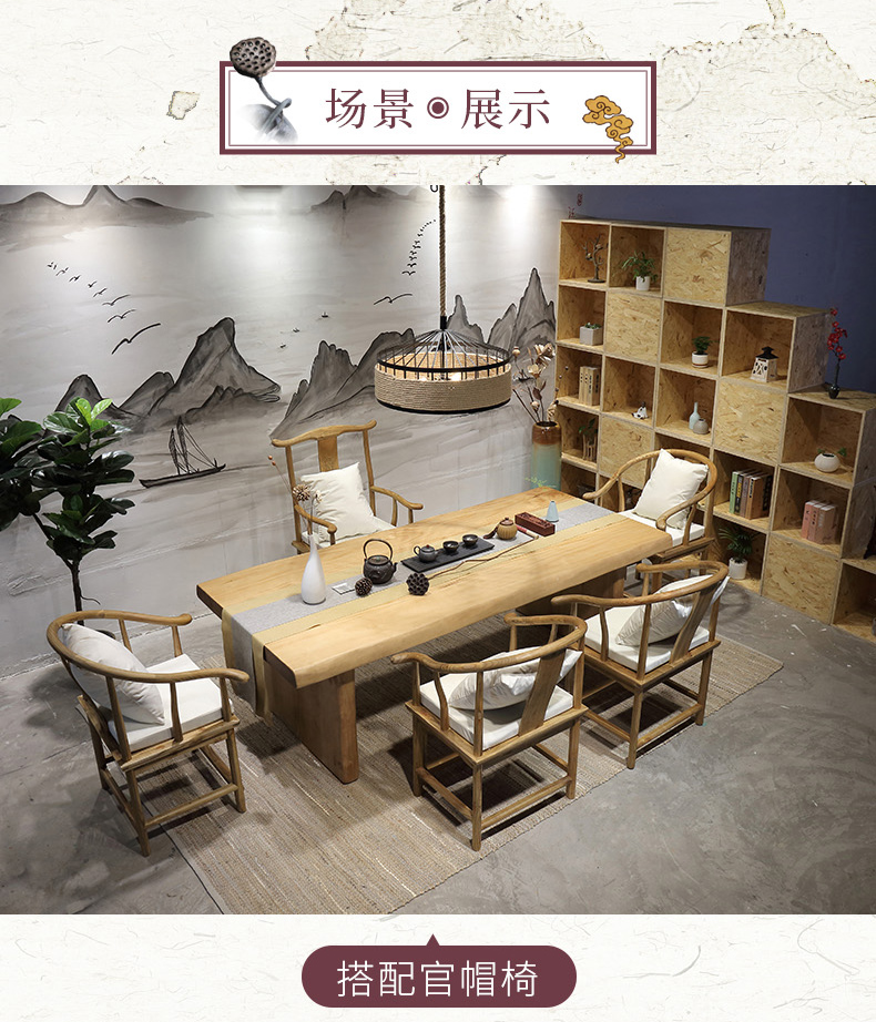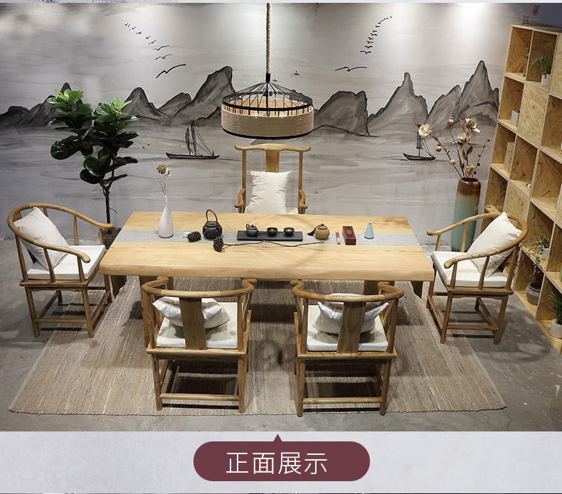Bàn trà gỗ ván lớn phong cách Trung Hoa mới Zen phòng khách nhà Kung Fu Bàn trà văn phòng log Bàn trà và ghế kết hợp