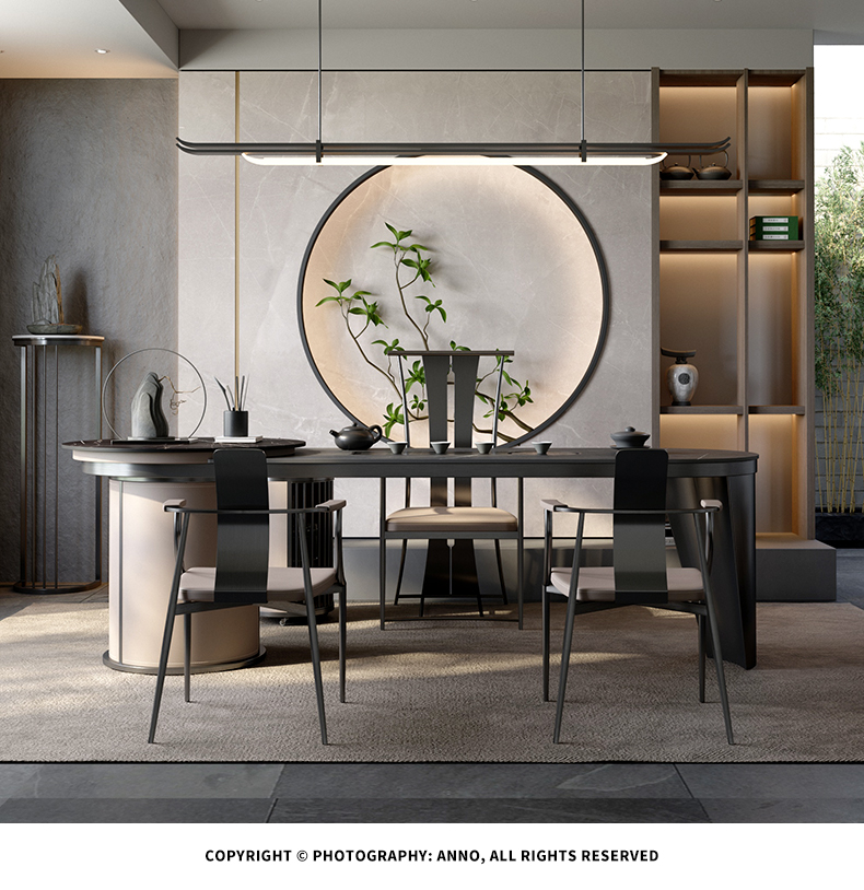 Bàn trà hiện đại, mắt bàn đá phiến nhập khẩu.