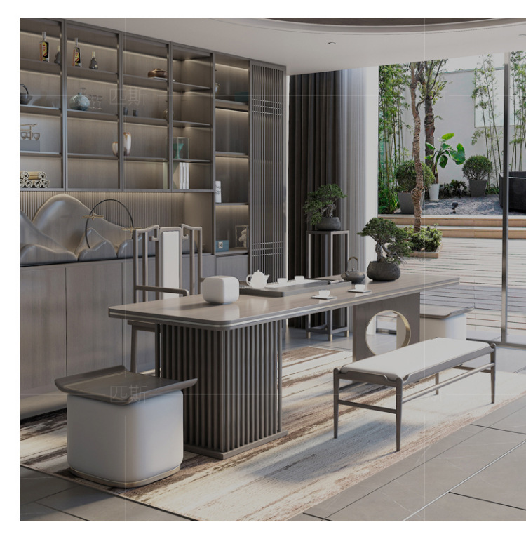 Bàn trà kiểu Trung Quốc mới và ghế gỗ nguyên khối nhẹ sang trọng Bàn trà kung fu văn phòng cao cấp Bàn trà Zen bàn cà phê một mảnh đơn giản