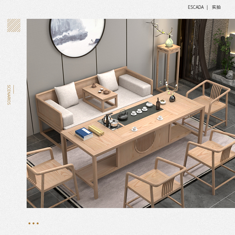Bàn trà kiểu Trung Quốc mới và ghế kết hợp gỗ tần bì Bàn trà Kung Fu Bàn cà phê Zen log bàn cà phê đơn giản hiện đại