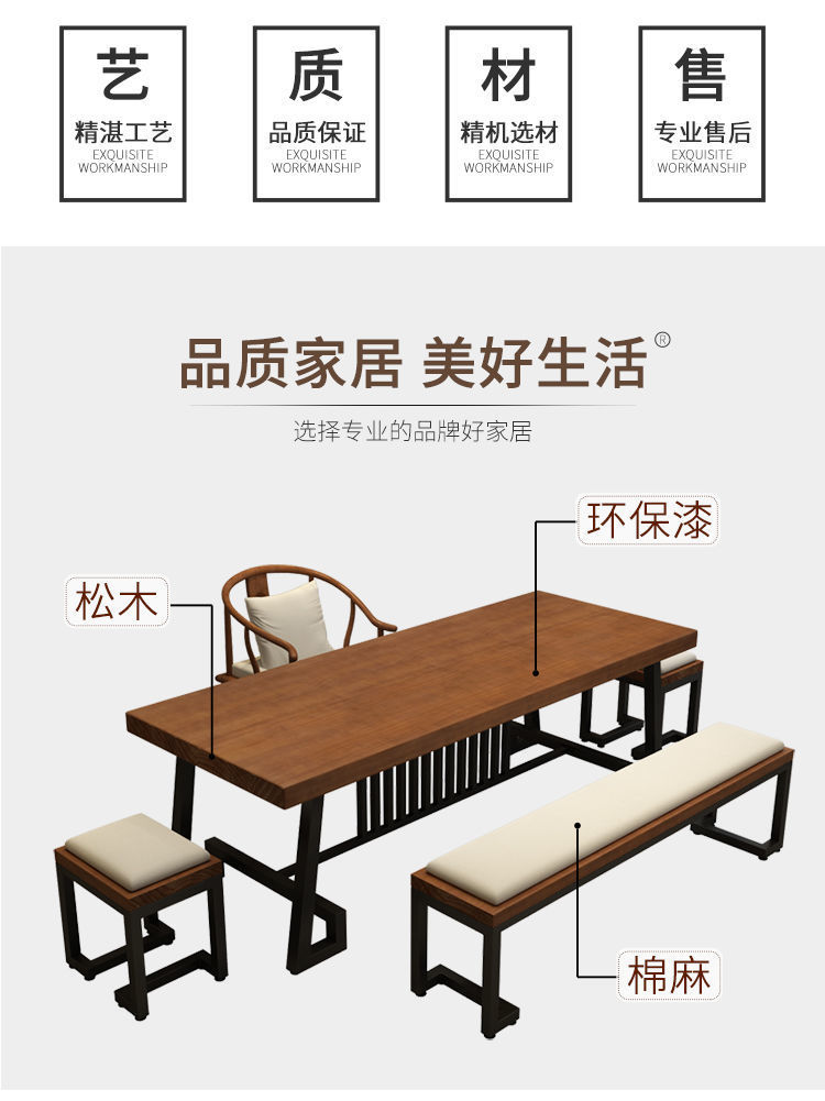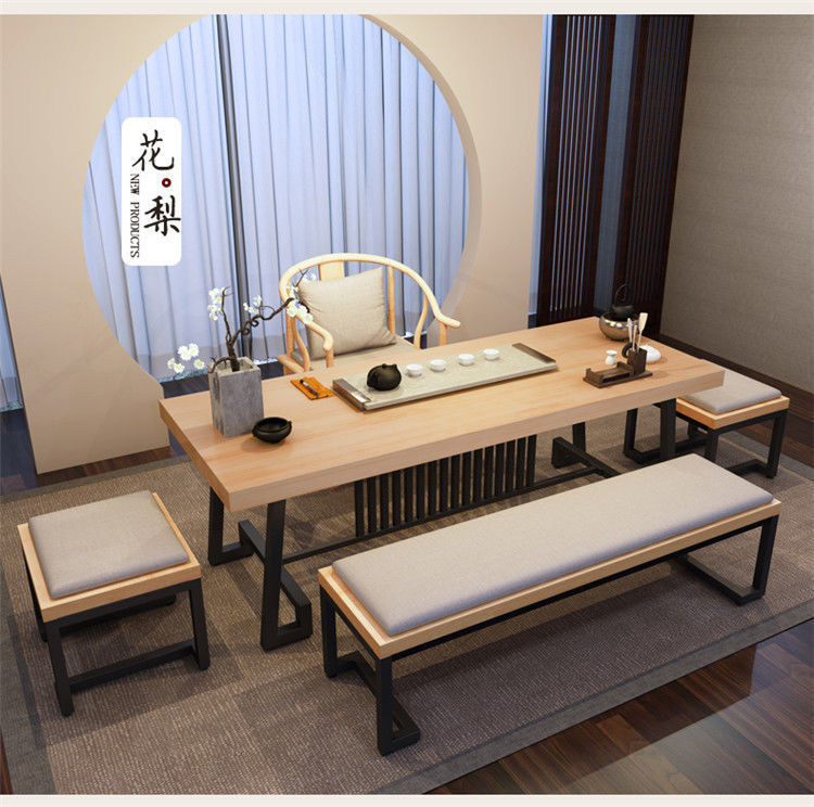 Bàn trà Kung Fu bằng gỗ nguyên khối kết hợp với bàn kiểu Trung Quốc mới Bàn trà thiền tại nhà Bàn trà đơn giản bàn uống trà