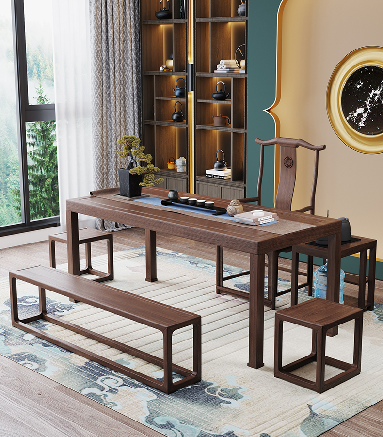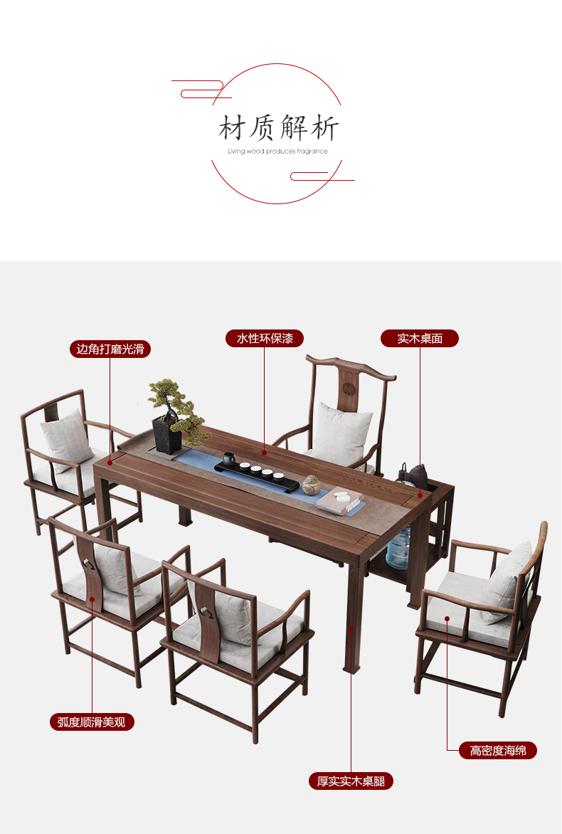 Bàn trà mới của Trung Quốc bằng gỗ rắn Bàn trà hiện đại tối giản Zen Bàn cà phê văn phòng công ty Kung Fu bộ bàn ghế kết hợp trà