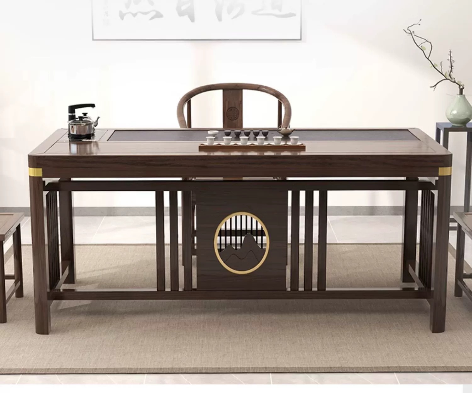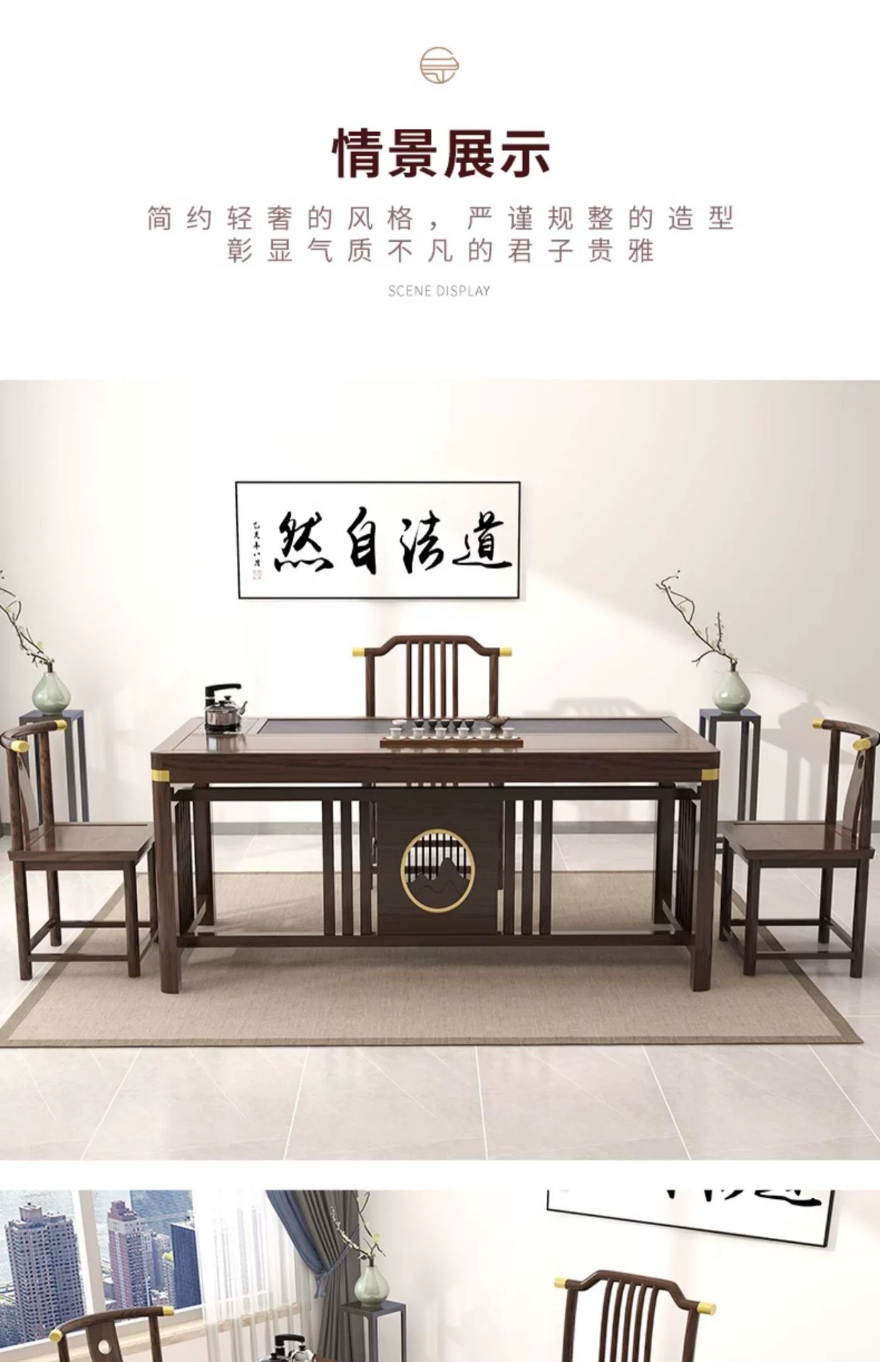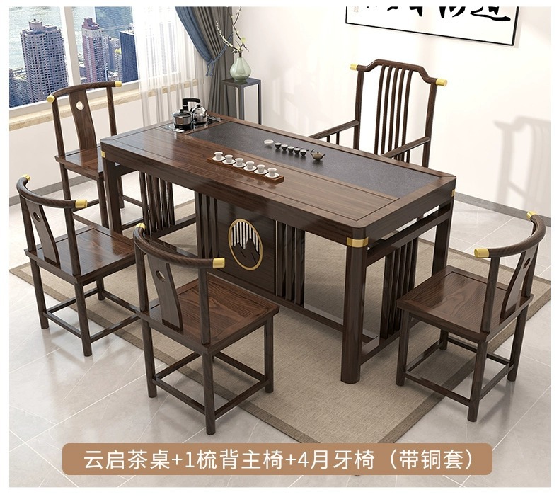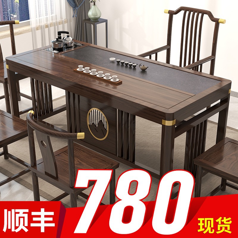 Bàn trà phong cách Trung Quốc mới Bàn trà gỗ chắc chắn và ghế kết hợp bàn cà phê văn phòng bộ trà gia đình một bàn pha trà Zen