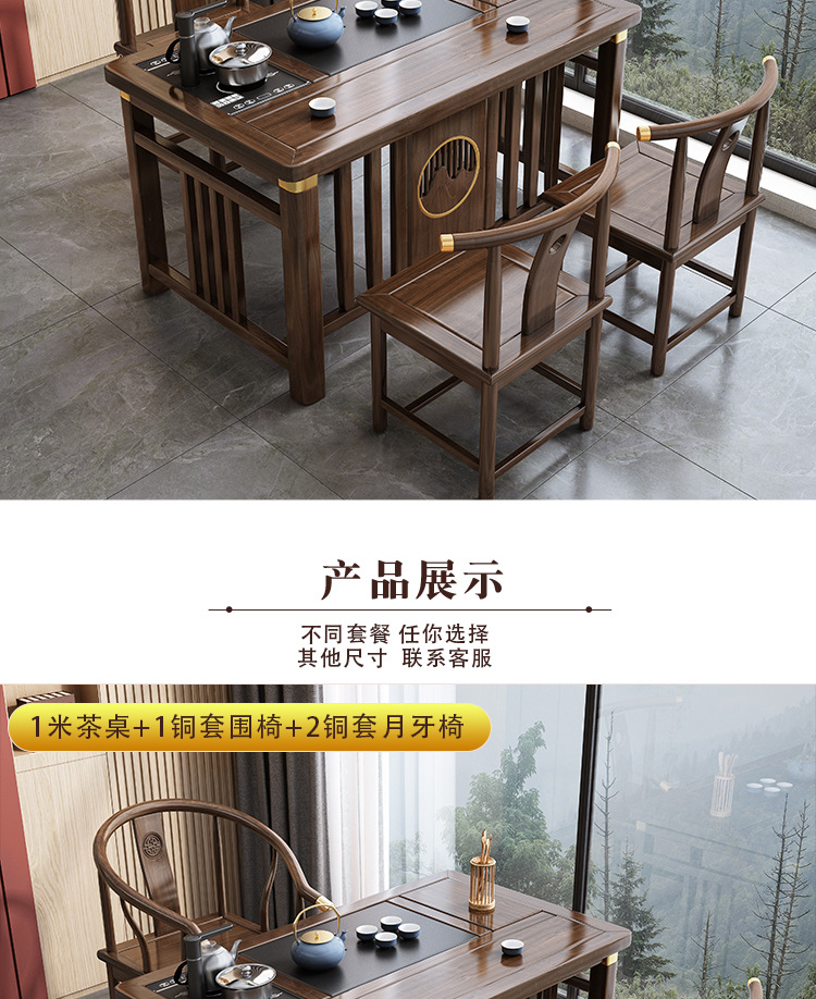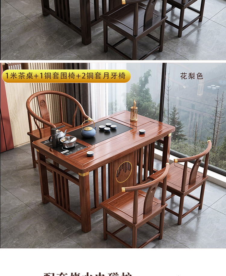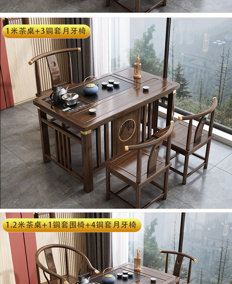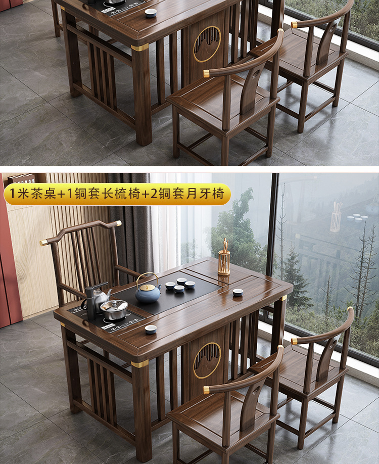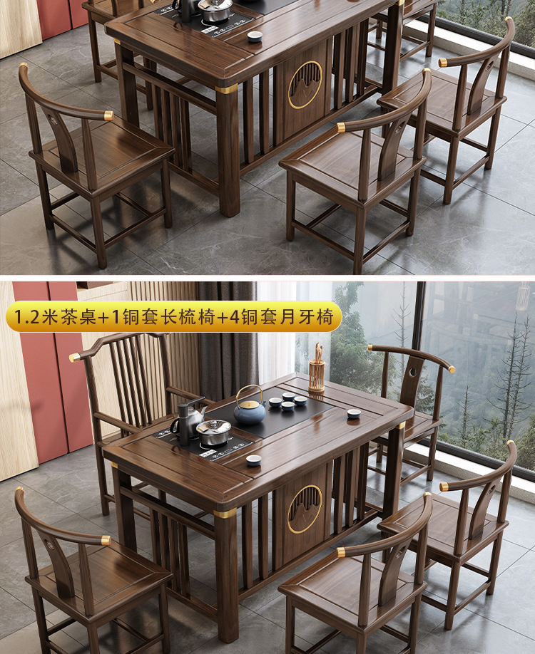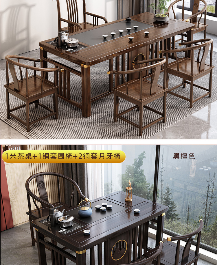 Bàn trà phong cách Trung Quốc mới bằng gỗ nguyên khối bộ Bàn trà kung fu bộ trà một Bàn trà phòng khách ban công Bàn trà kết hợp bàn ghế