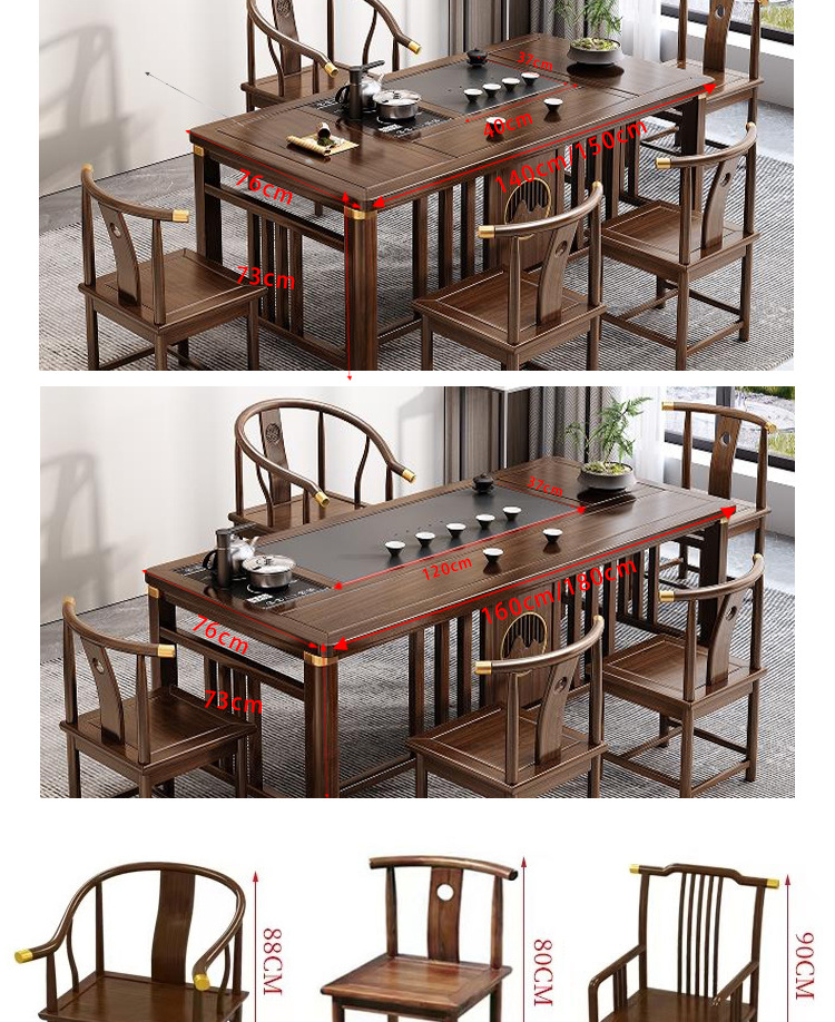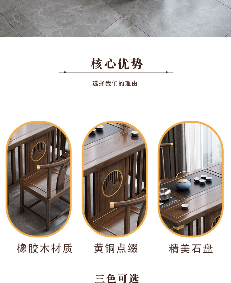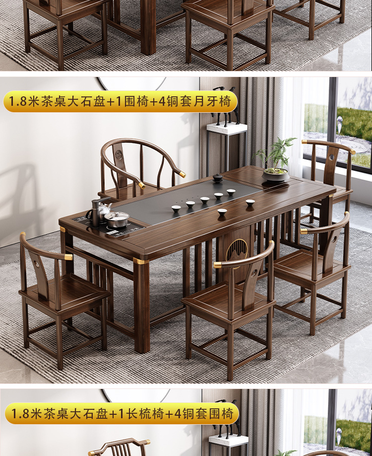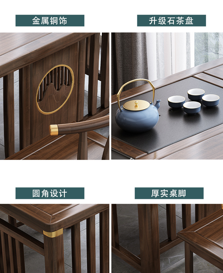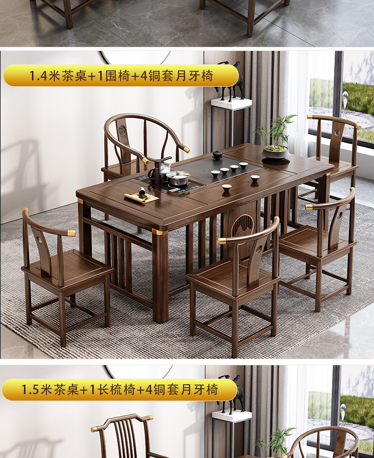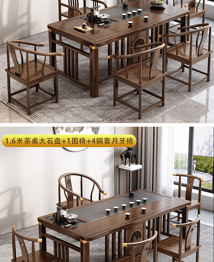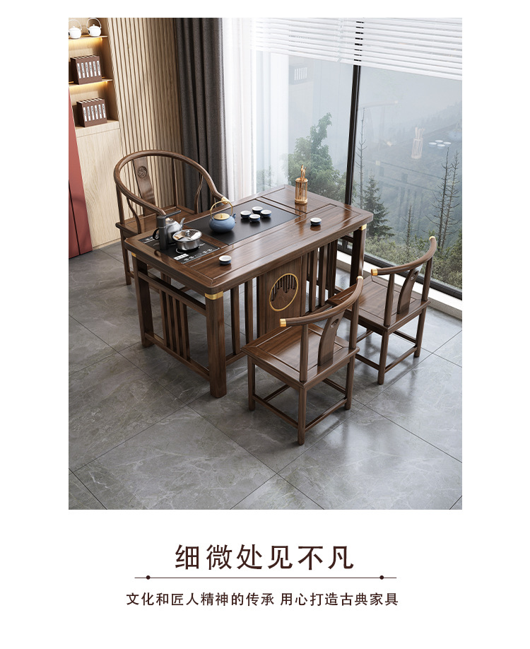 Bàn trà phong cách Trung Quốc mới bằng gỗ nguyên khối bộ Bàn trà kung fu bộ trà một Bàn trà phòng khách ban công Bàn trà kết hợp bàn ghế