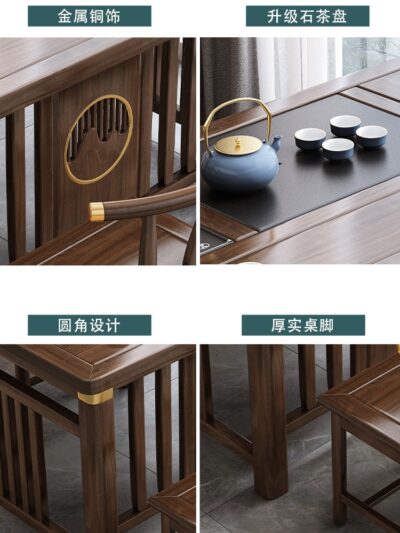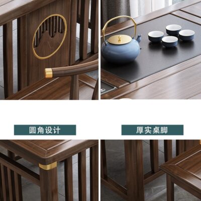 Bàn trà phong cách Trung Quốc mới bằng gỗ nguyên khối bộ Bàn trà kung fu bộ trà một Bàn trà phòng khách ban công Bàn trà kết hợp bàn ghế