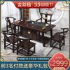 Bàn trà phong cách Trung Quốc mới và ghế kết hợp Bàn trà gỗ óc chó màu đen Zen Bàn trà gỗ rắn bộ bàn trà văn phòng Bàn trà kung fu