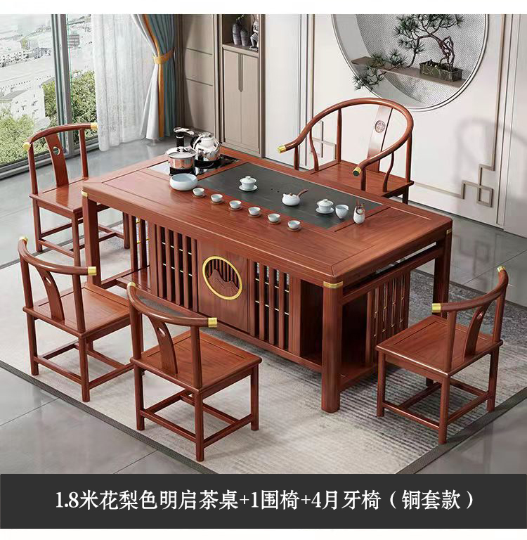 Bàn trà phong cách Trung Quốc mới và ghế kết hợp gỗ nguyên khối Bàn trà Kung Fu bộ bàn trà bộ một phòng khách văn phòng phòng khách Bàn trà Zen
