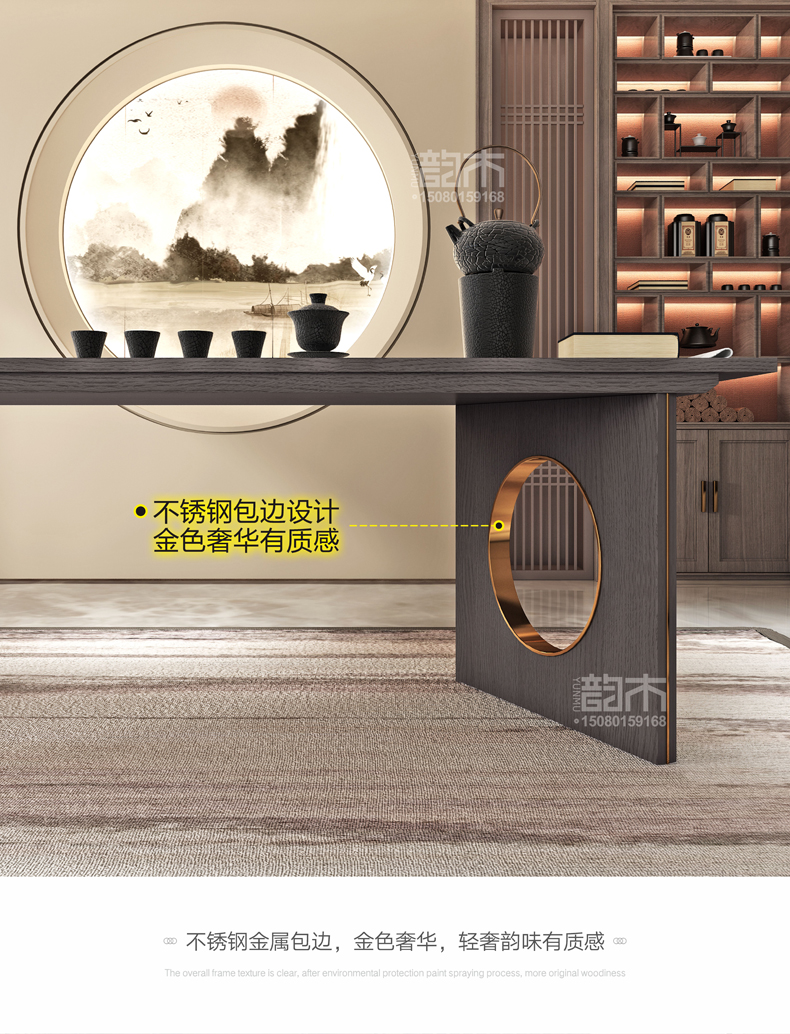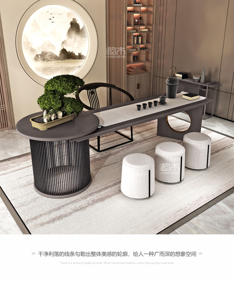 Bàn trà phong cách Trung Quốc mới Zen màu đen gỗ óc chó gỗ rắn Bàn trà Kung Fu bàn trà nhà và ghế kết hợp nội thất văn phòng