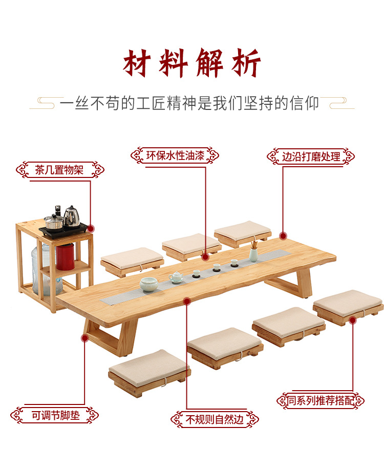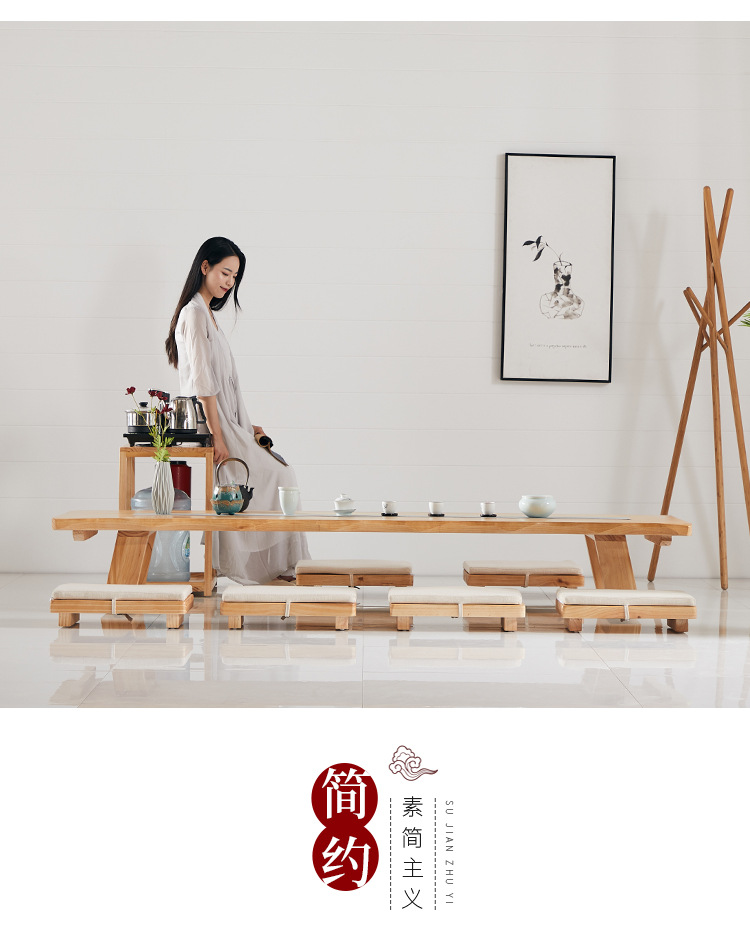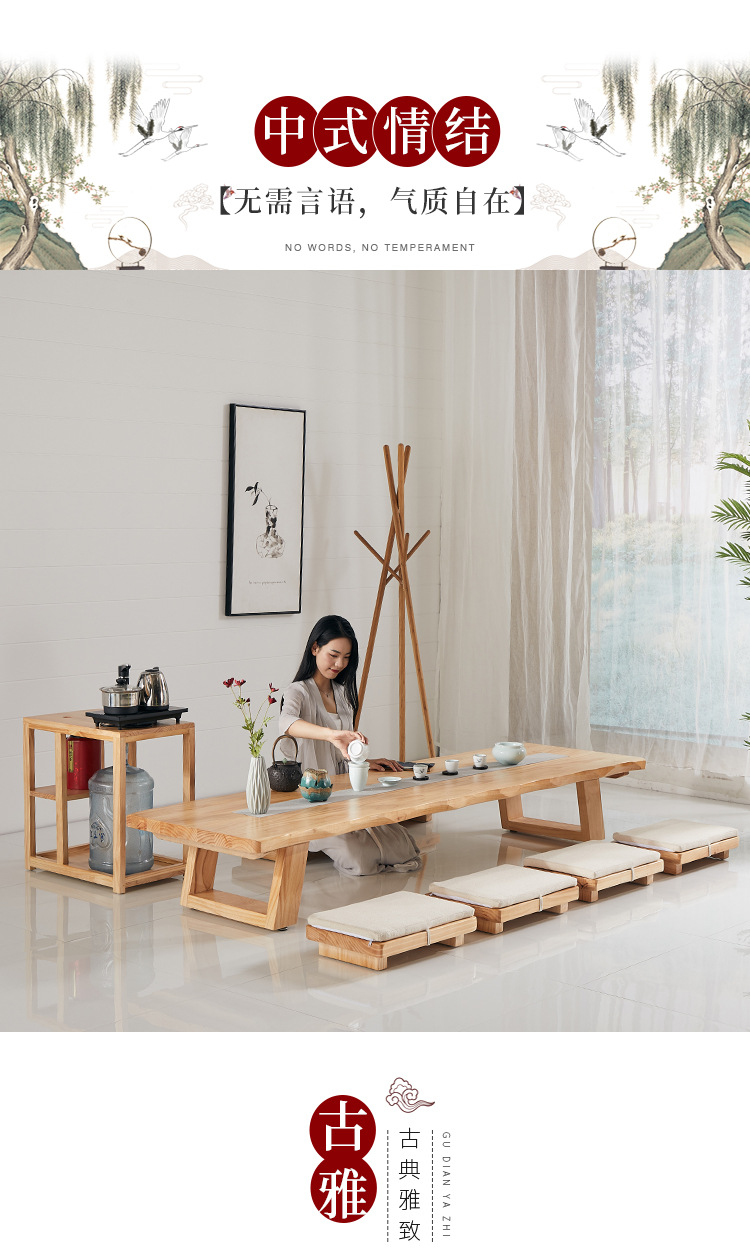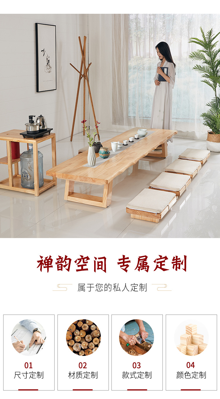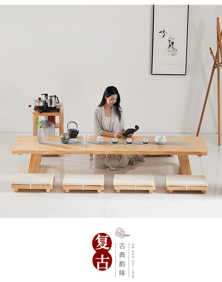 Bộ bàn ghế uống trà kiểu Nhật Bàn trà tatami phong cách Nhật Bản bàn cà phê gỗ cứng Zen