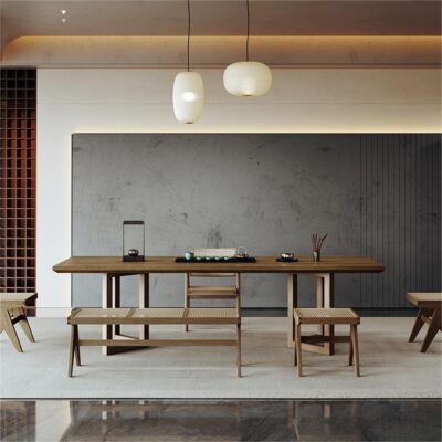Bàn trà tiếp tân gỗ nguyên khối tối giản hiện đại phong cách wabi sabi khúc gỗ lớn Bàn trà và ghế kết hợp Bàn trà văn phòng