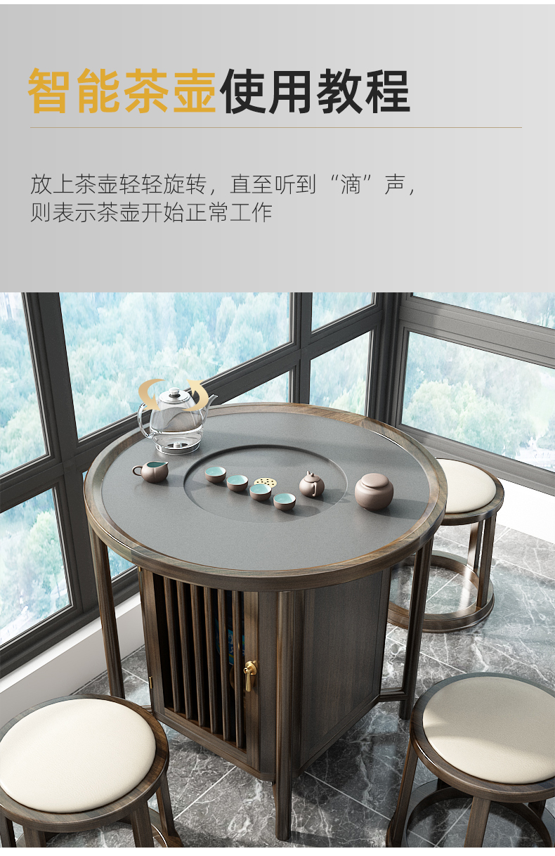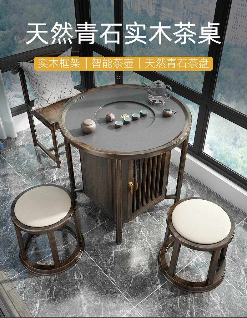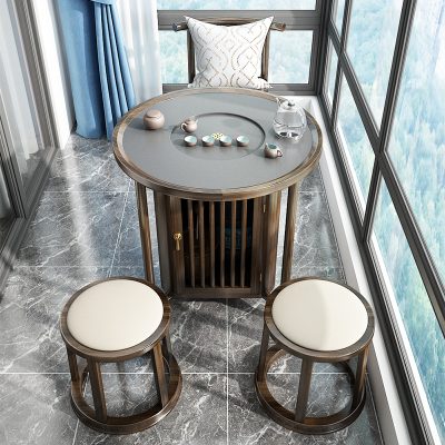 Bàn trà tròn kết hợp gỗ rắn bàn trà nhỏ ban công