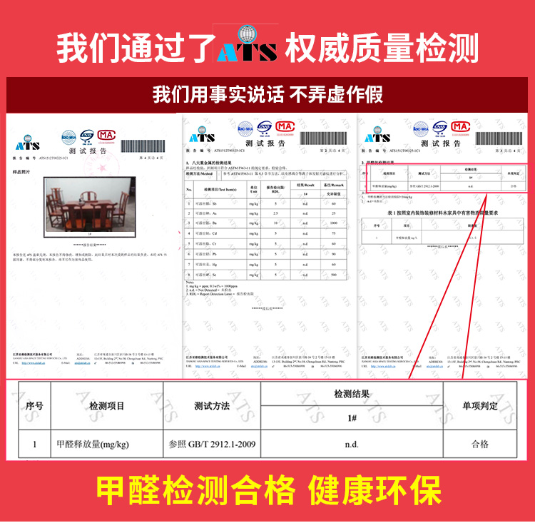 1.整个产品框架为实木制造,货真价实; 2.主材为南榆木,花纹美观清晰,木材质地均匀,色调柔和流畅; 3.辅材为实木复合板,结构均匀,稳定性好。 |