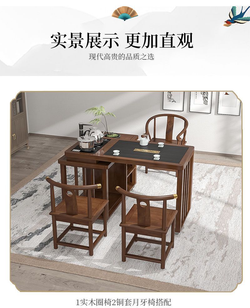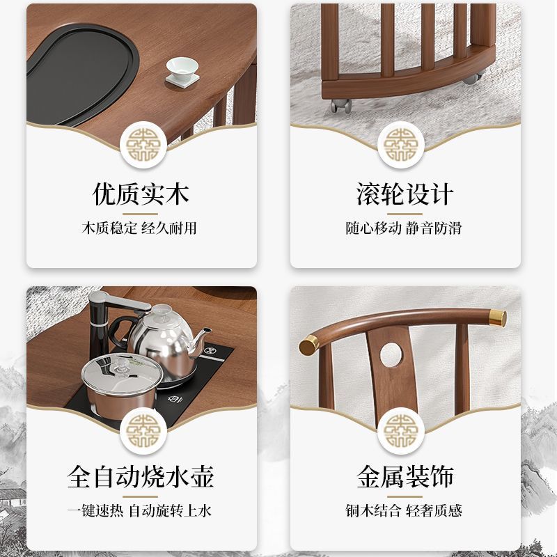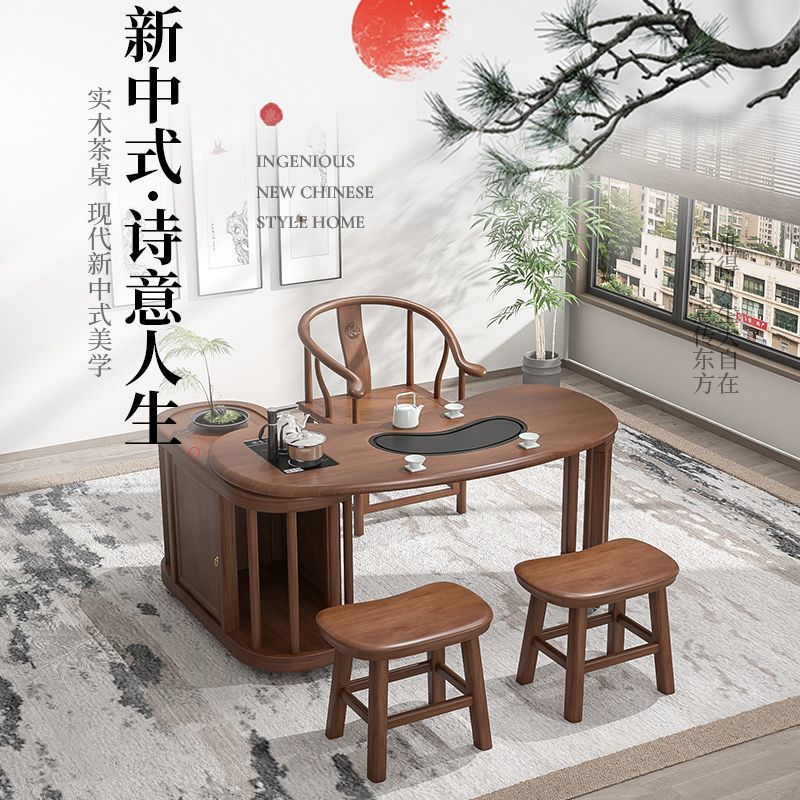 Bàn trà và ghế kết hợp Bàn trà gỗ nguyên khối Bàn trà di động một căn hộ nhỏ Bàn trà đặt bàn cà phê kiểu Trung Quốc mới