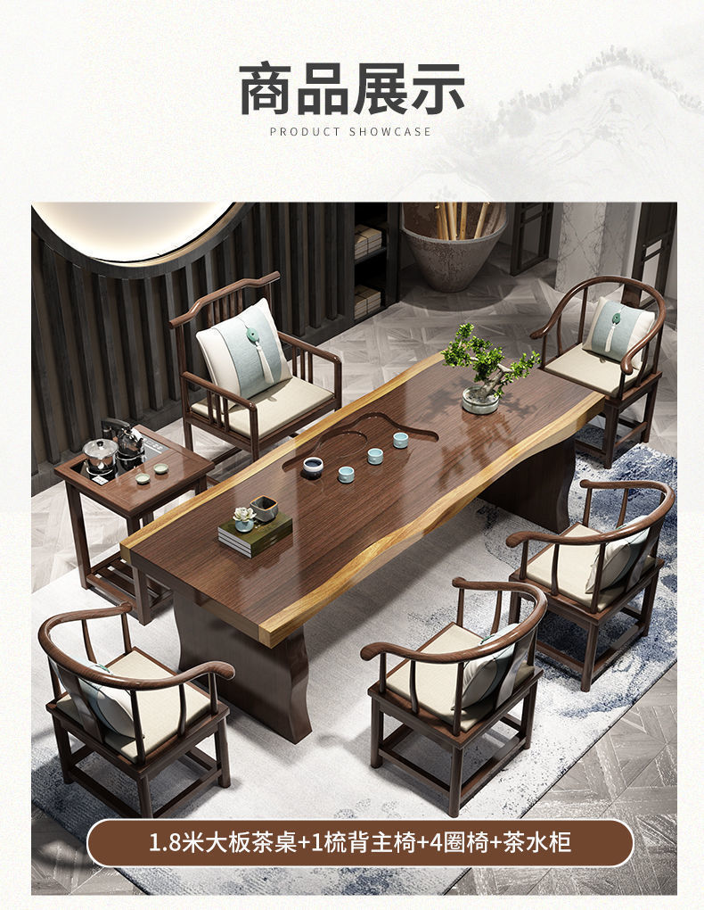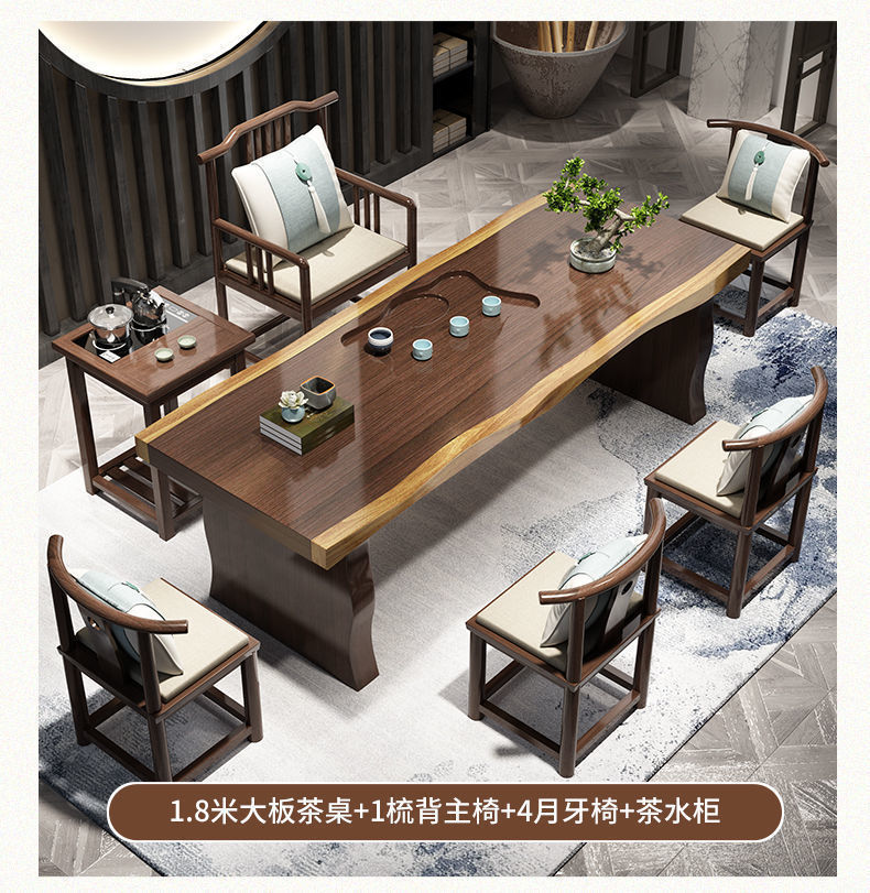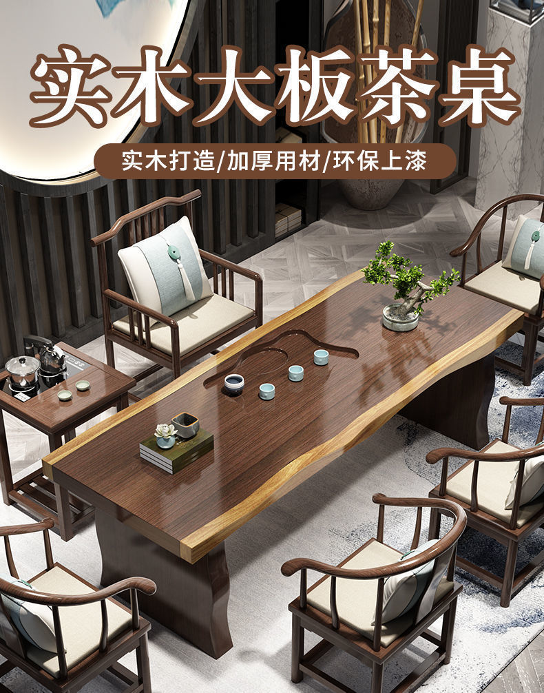 Bàn trà ván lớn bằng gỗ nguyên khối Zen Kung Fu bảng lớn phong cách Trung Quốc mới văn phòng tại nhà trọn bộ Bàn trà gỗ kết hợp Bàn trà và ghế