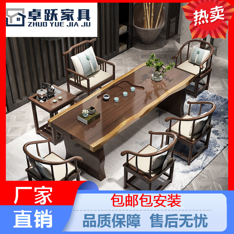 Bàn trà ván lớn bằng gỗ nguyên khối Zen Kung Fu bảng lớn phong cách Trung Quốc mới văn phòng tại nhà trọn bộ Bàn trà gỗ kết hợp Bàn trà và ghế