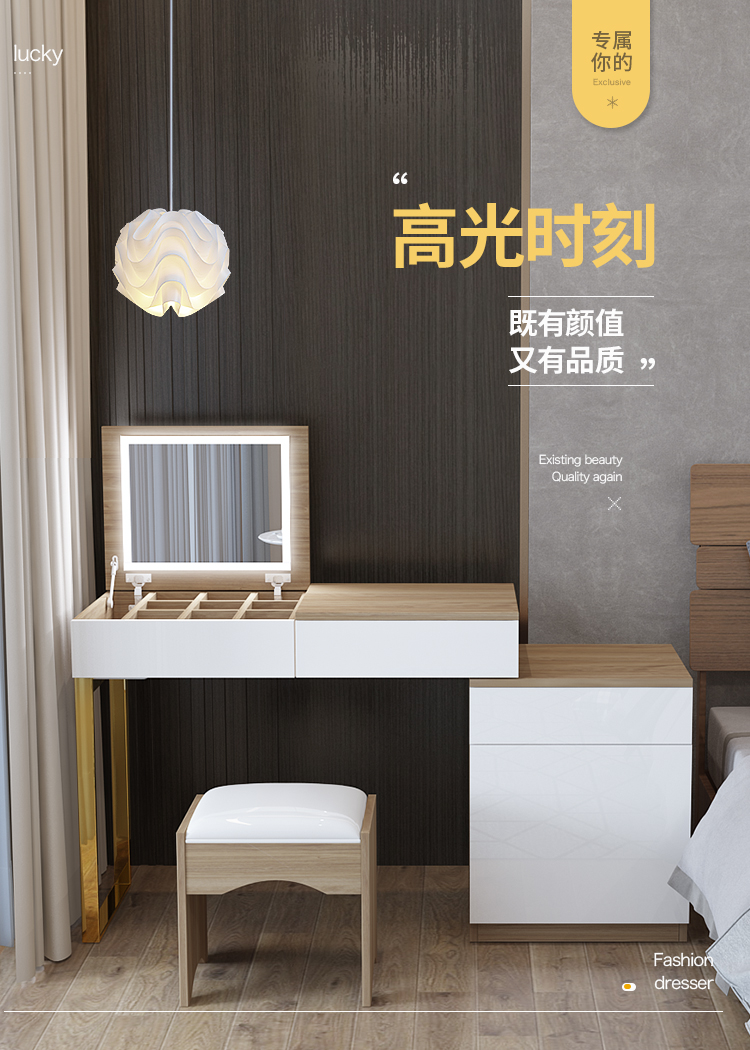 Bàn trang điểm bắc âu căn hộ nhỏ đơn giản hiện đại bàn trang điểm phòng ngủ lật lưới màu đỏ bàn trang điểm gió có đèn