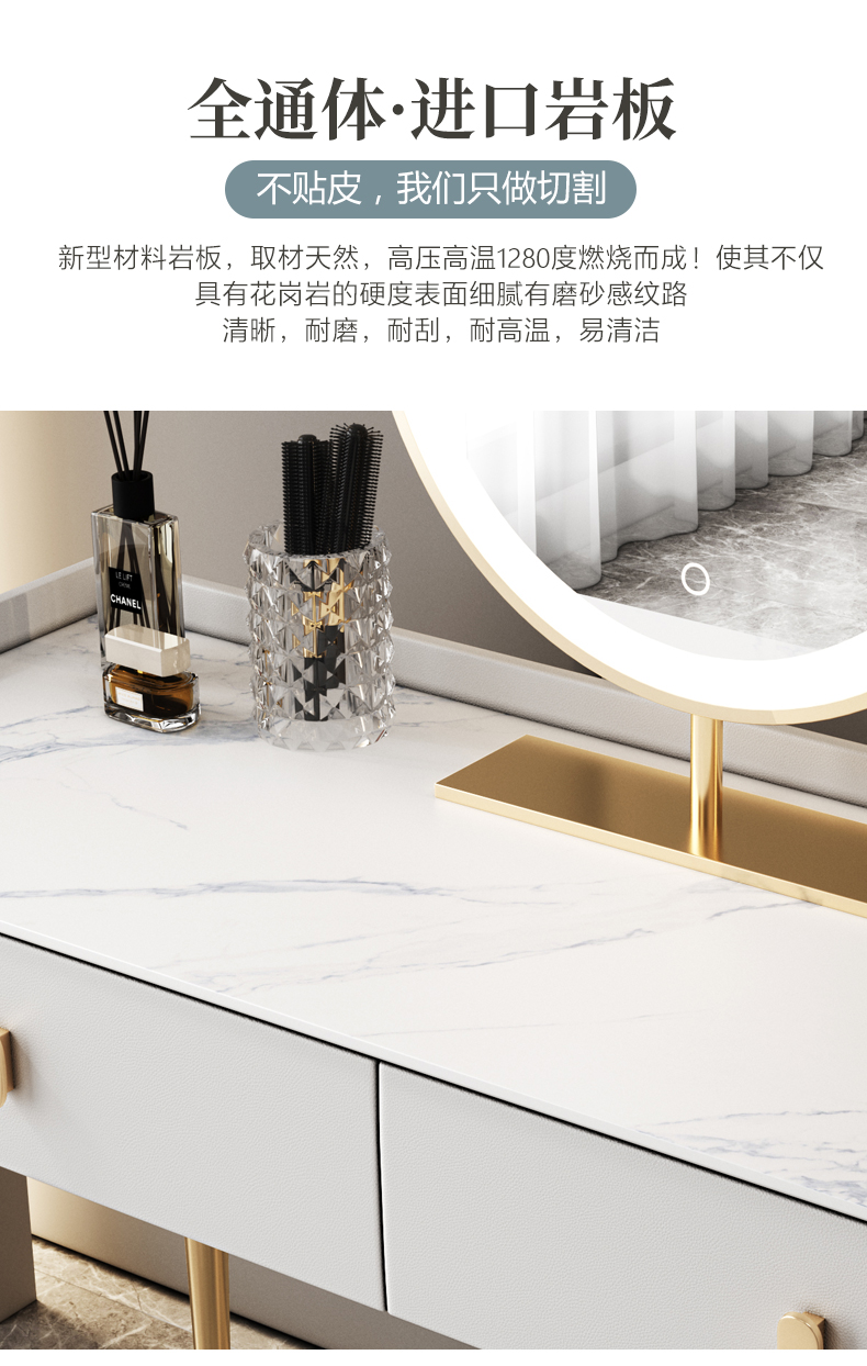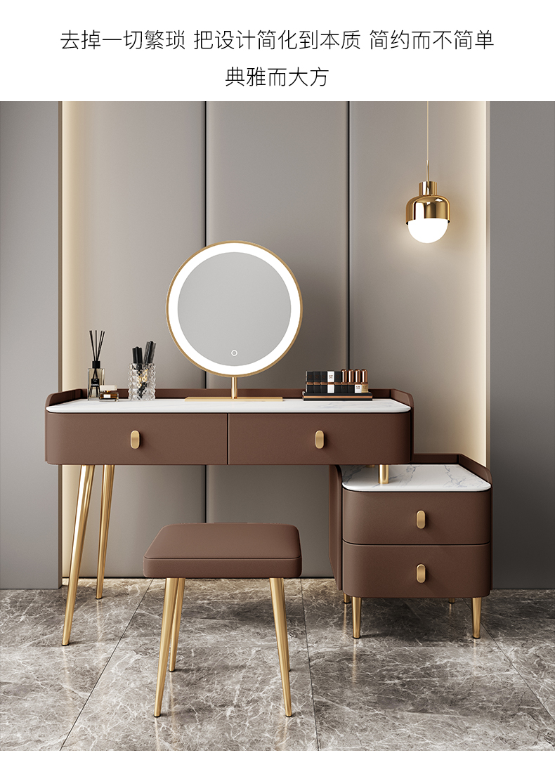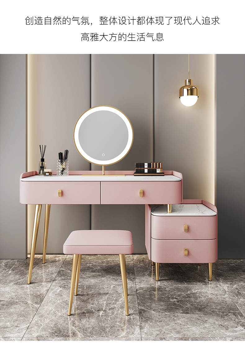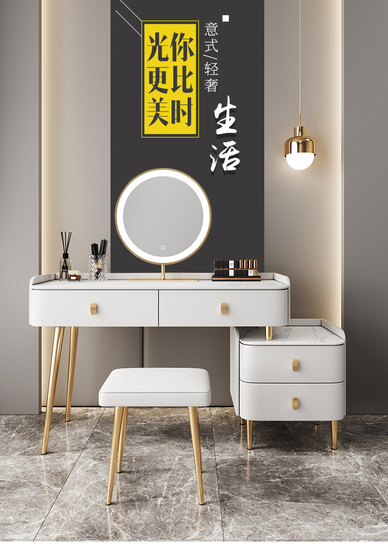 Bàn trang điểm bằng đá phiến gỗ cứng sang trọng nhẹ tủ lưu trữ hiện đại tối giản căn hộ nhỏ gương thông minh bàn trang điểm mini