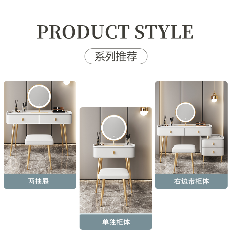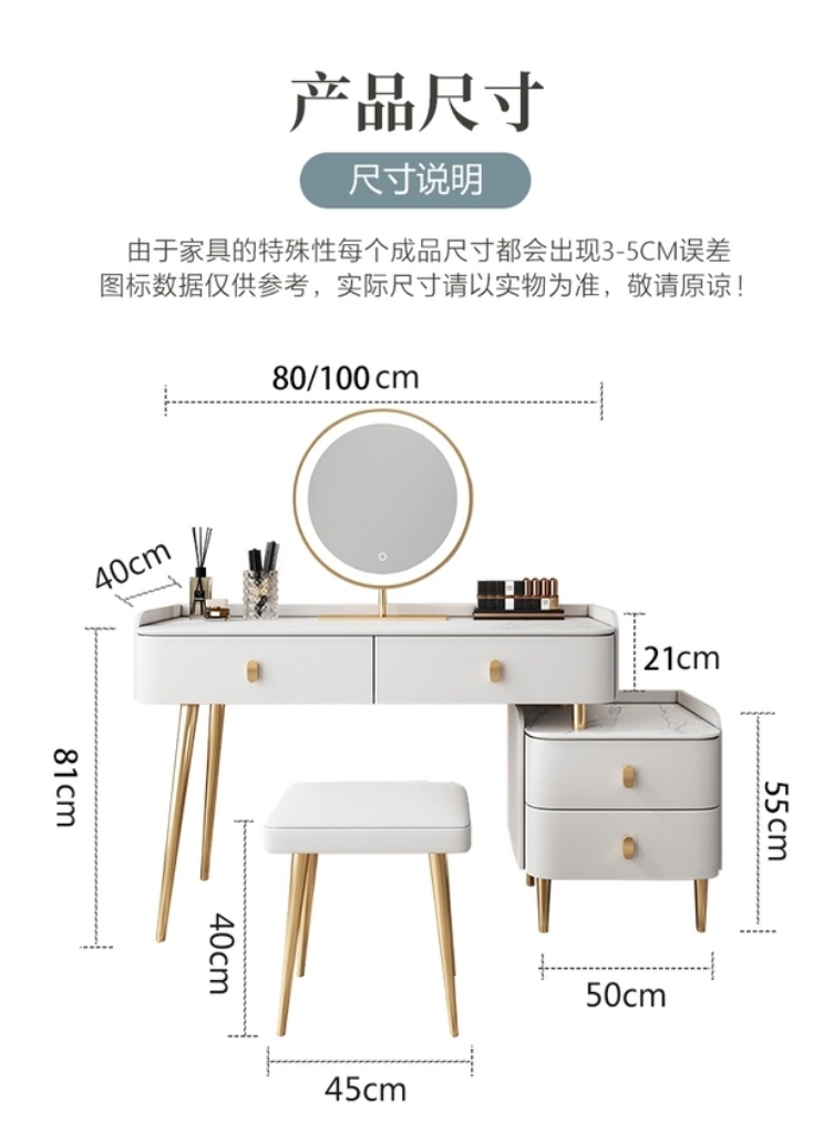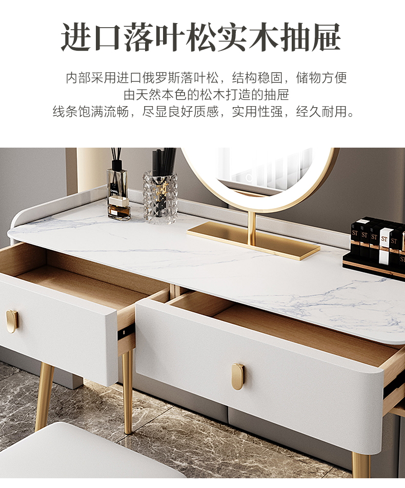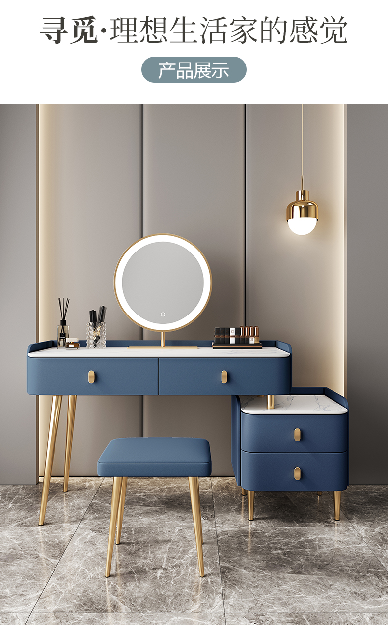 Bàn trang điểm bằng đá phiến gỗ cứng sang trọng nhẹ tủ lưu trữ hiện đại tối giản căn hộ nhỏ gương thông minh bàn trang điểm mini
