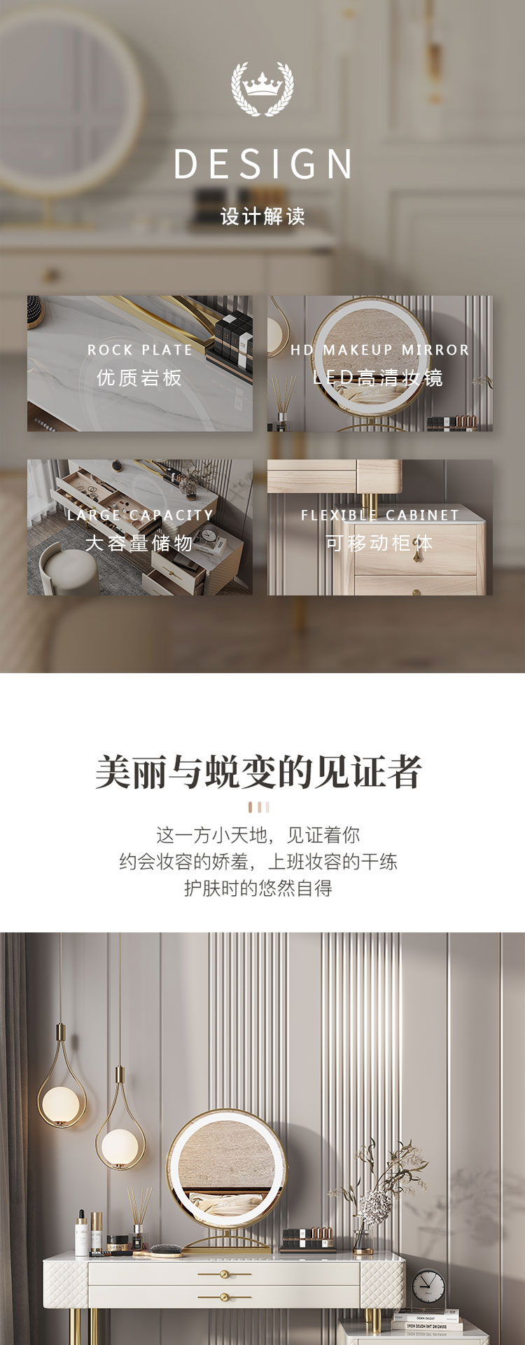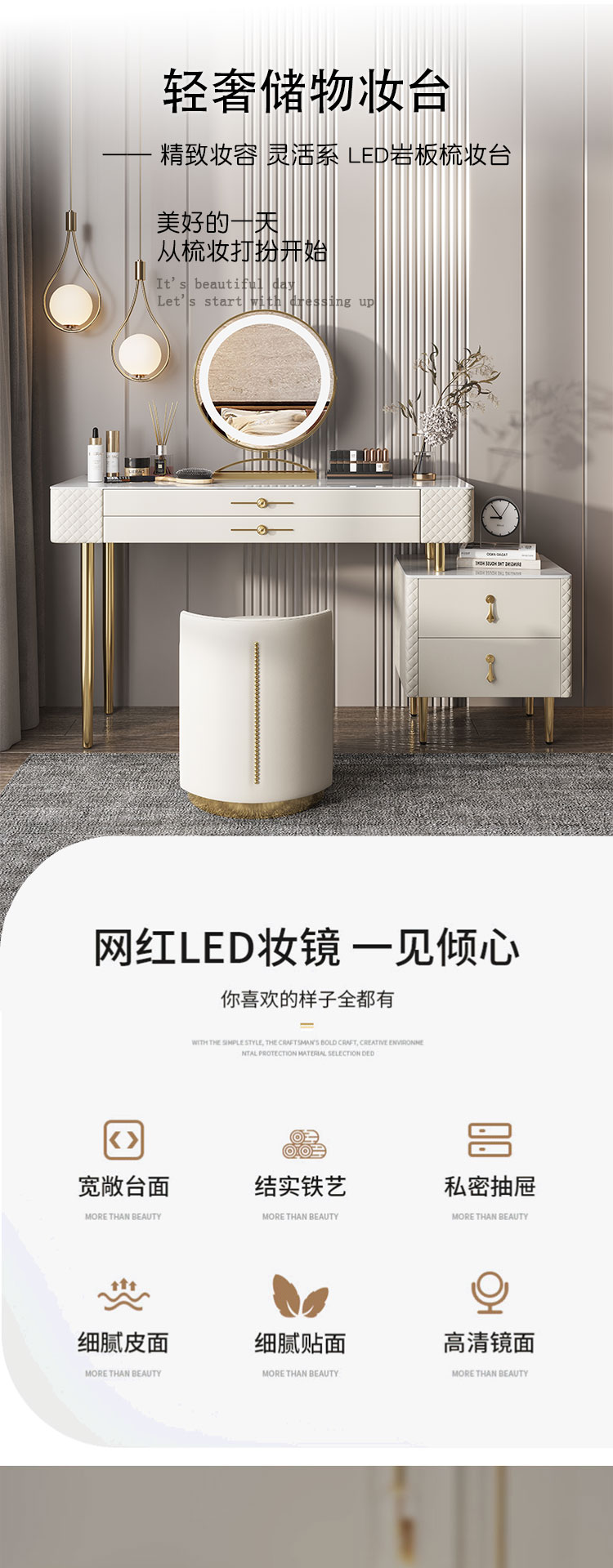Bàn trang điểm bằng đá phiến sang trọng nhẹ hiện đại phòng ngủ tối giản cho căn hộ nhỏ tủ lưu trữ bằng gỗ nguyên khối với đèn tích hợp bàn trang điểm có thể thu vào