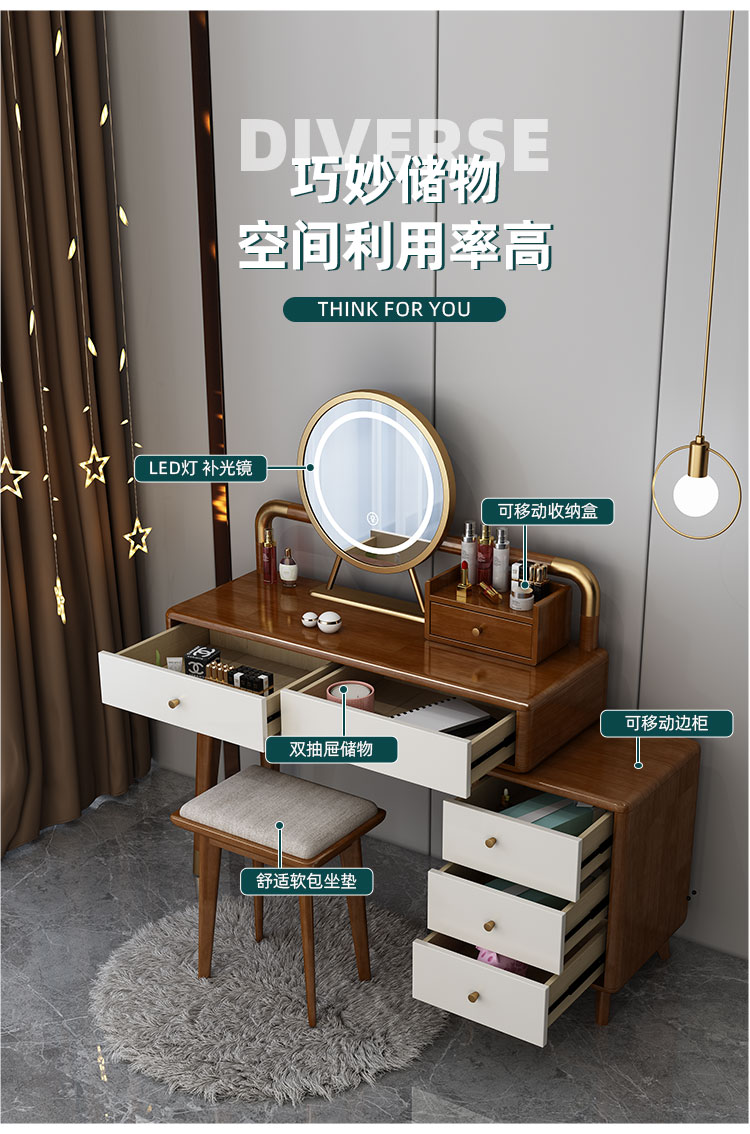 Bàn trang điểm bằng gỗ cứng màu sáng hiện đại sang trọng Gương phòng ngủ kiểu Bắc Âu có đèn lưu trữ đa chức năng Bàn trang điểm căn hộ nhỏ màu đỏ ròng