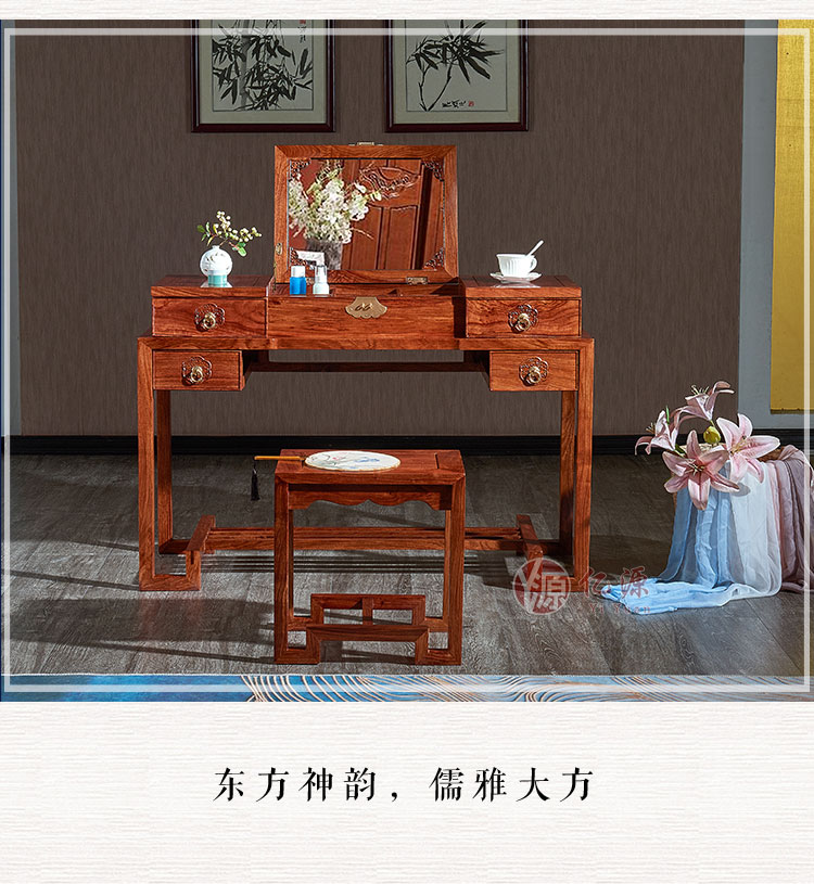 Bàn trang điểm bằng gỗ gụ bàn trang điểm bằng gỗ cẩm lai Bàn trang điểm bằng gỗ rắn hedgehog gỗ đàn hương đỏ phong cách Trung Quốc mới gương lật phòng ngủ căn hộ nhỏ đơn giản