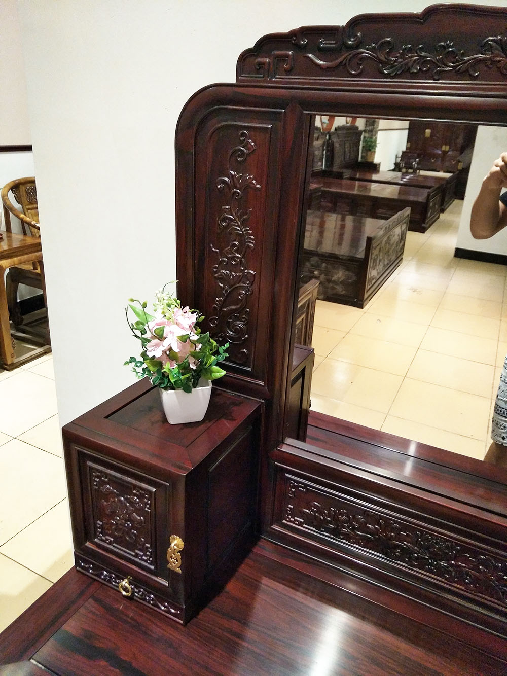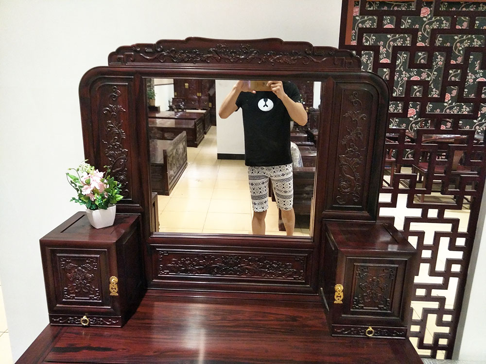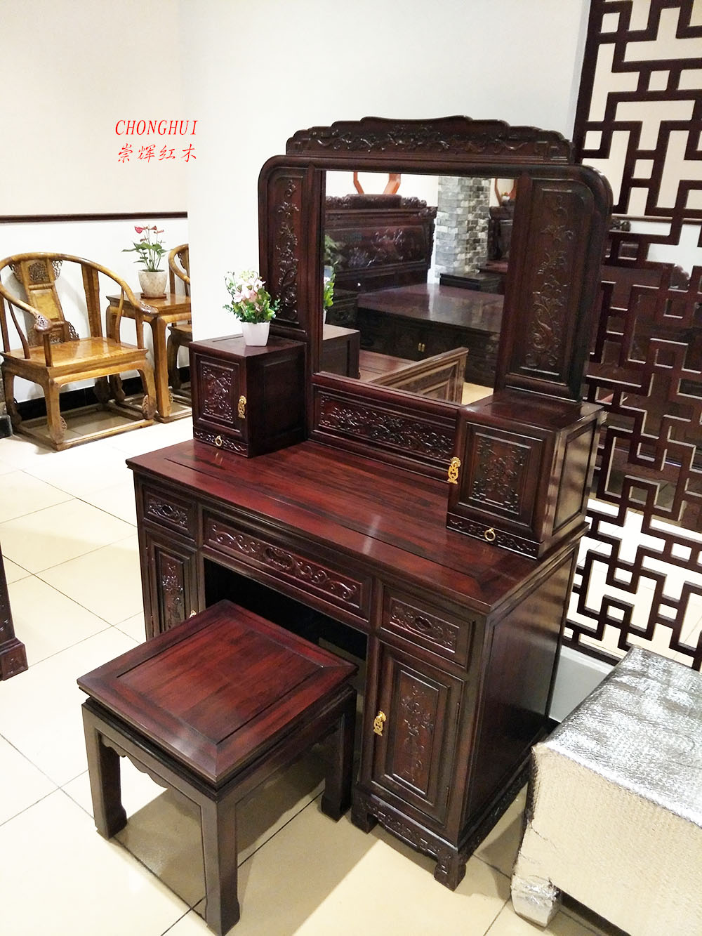 Bàn trang điểm bằng gỗ gụ Bàn trang điểm bằng gỗ cẩm lai Nam Mỹ nhà Minh và nhà Thanh chạm khắc cổ điển phong cách Trung Quốc gương trang điểm bằng gỗ nguyên khối kết hợp phòng ngủ